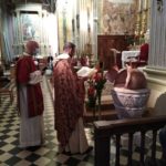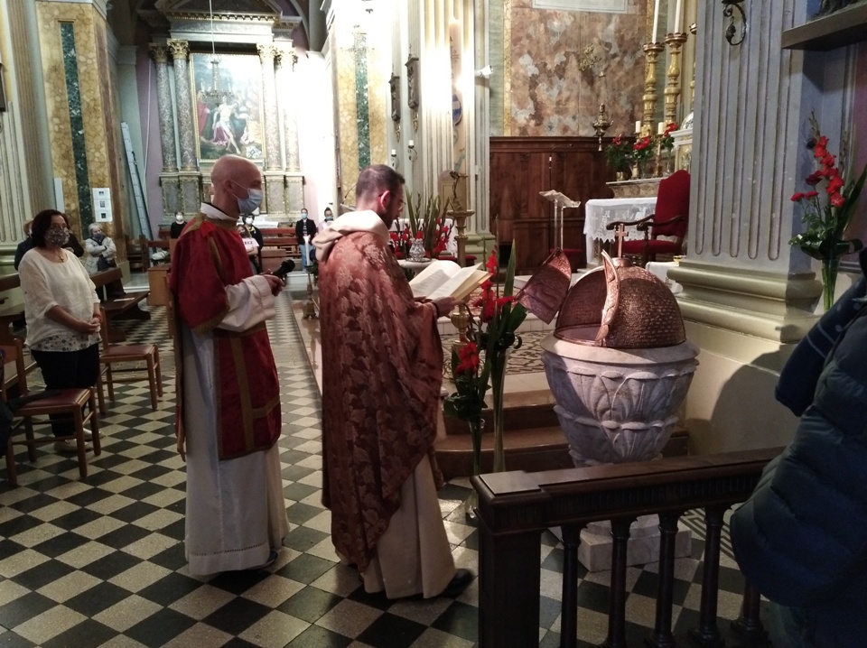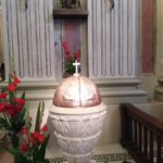 ACQUAVIVA PICENA – Sabato 30 maggio, durante la Celebrazione vigiliare della Pentecoste,si è potuto finalmente benedire il restaurato fonte battesimale della chiesa di San Niccolò in Acquaviva Picena. L’emergenza coronavirus con la forzata clausura che tutti abbiamo vissuto, aveva impedito di procedere al rito di benedizione che sarebbe dovuto avvenire all’inizio del cammino quaresimale che proprio in questo anno liturgico, aveva un connotato fortemente battesimale.