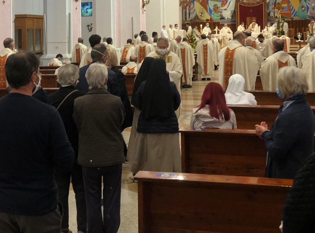 Però le due cose non si contrappongono poiché il Vescovo, presiedendo la celebrazione, come prevede il protocollo della CEI con lo Stato, non deve portare la mascherina, come non la portano i sacerdoti che presiedono la Santa Messa. Il protocollo prevede infatti che il celebrante indossi la mascherina solo al momento della distribuzione della comunione e così il Vescovo ha fatto, come mostrano le foto del nostro articolo scattate in quel giorno.