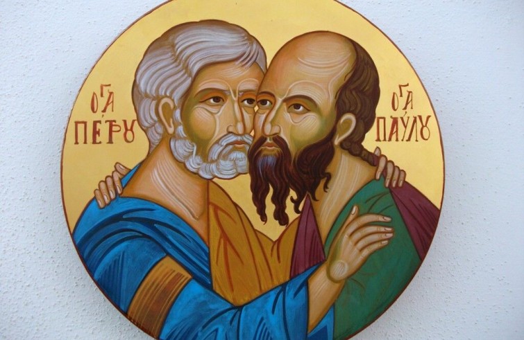 La tradizione sostiene che Paolo e Pietro fossero a Roma negli stessi anni e che ebbero la possibilità di incontrarsi e predicare il Vangelo insieme. Sicuramente entrambi morirono come martiri, Paolo ucciso con la spada e Pietro con la crocifissione. Tra i due grande rispetto ma anche grande libertà. La libertà di esprimere il proprio pensiero, cosa che Paolo non manca di evidenziare nella lettera ai Galati. Paolo racconta il suo viaggio a Gerusalemme, il suo incontro con Pietro e come da lui stesso abbia ricevuto la missione di andare tra i pagani. Paolo non fa mistero della sua obbedienza, riconosce in Pietro una colonna e un’autorità e rispetta il suo volere. “Riconoscendo la grazia a me data, Giacomo, Cefa e Giovanni, ritenuti le colonne, diedero a me e a Bàrnaba la destra in segno di comunione, perché noi andassimo tra le genti e loro tra i circoncisi” (Gal 2, 9). Allo stesso modo, non avrà remore nel mettere in evidenza anche lo scontro a viso aperto con Pietro. Un confronto avvenuto ad Antiochia in seguito alla chiusura di Pietro nei confronti dei pagani, che a detta degli anziani, non erano circoncisi. Luca non ne fa cenno negli Atti.
