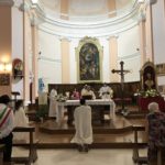 Conclusa la celebrazione eucaristica ha avuto inizio la breve processione e il simulacro di San Paterniano è stato trasportato dai membri della Confraternita dell’Addolorata, fra il suono delle campane a festa e dei botti, pochi come si è detto, per giungere alla chiesa di Sant’Agostino dove il parroco ha impartito la benedizione finale.