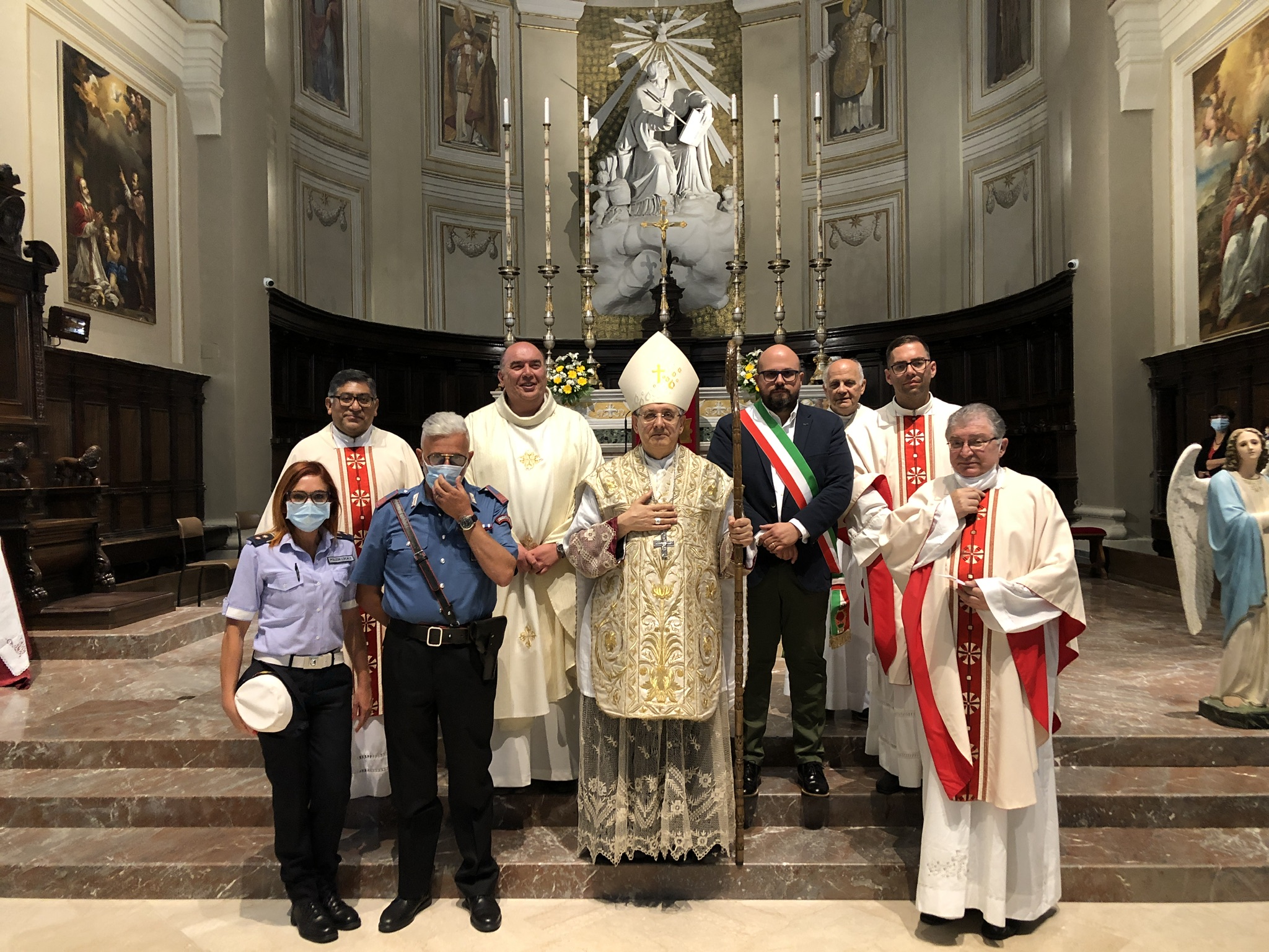 RIPATRANSONE – La Città di Ripatransone ha onorato ancora una volta Santa Maria Maddalena, sua patrona principale. L’emergenza coronavirus non ha bloccato la festa che anzi, per tanti versi, è stata rinnovata e arricchita (ne abbiamo parlato QUI). Ma il momento più importante e solenne è stato ovviamente quello della Santa Messa celebrata nella serata di mercoledì 22 luglio presso il Duomo. Il sacro rito è stato presieduto dal Vescovo Carlo Bresciani e concelebrato dal parroco del Duomo don Nicola Spinozzi, da don Tommaso Capriotti, da don Luis Sandoval e da don Silvio Giampieri mentre ha assistito la funzione il diacono permanente Walter Gandolfi. Ha preso parte alla celebrazione eucaristica il Sindaco Alessandro Lucciarini insieme ad altre autorità civili e militari.