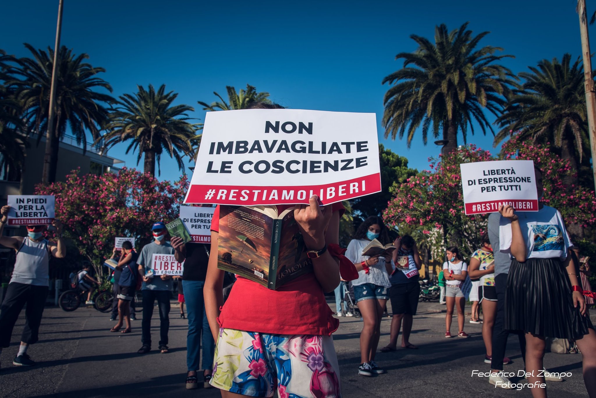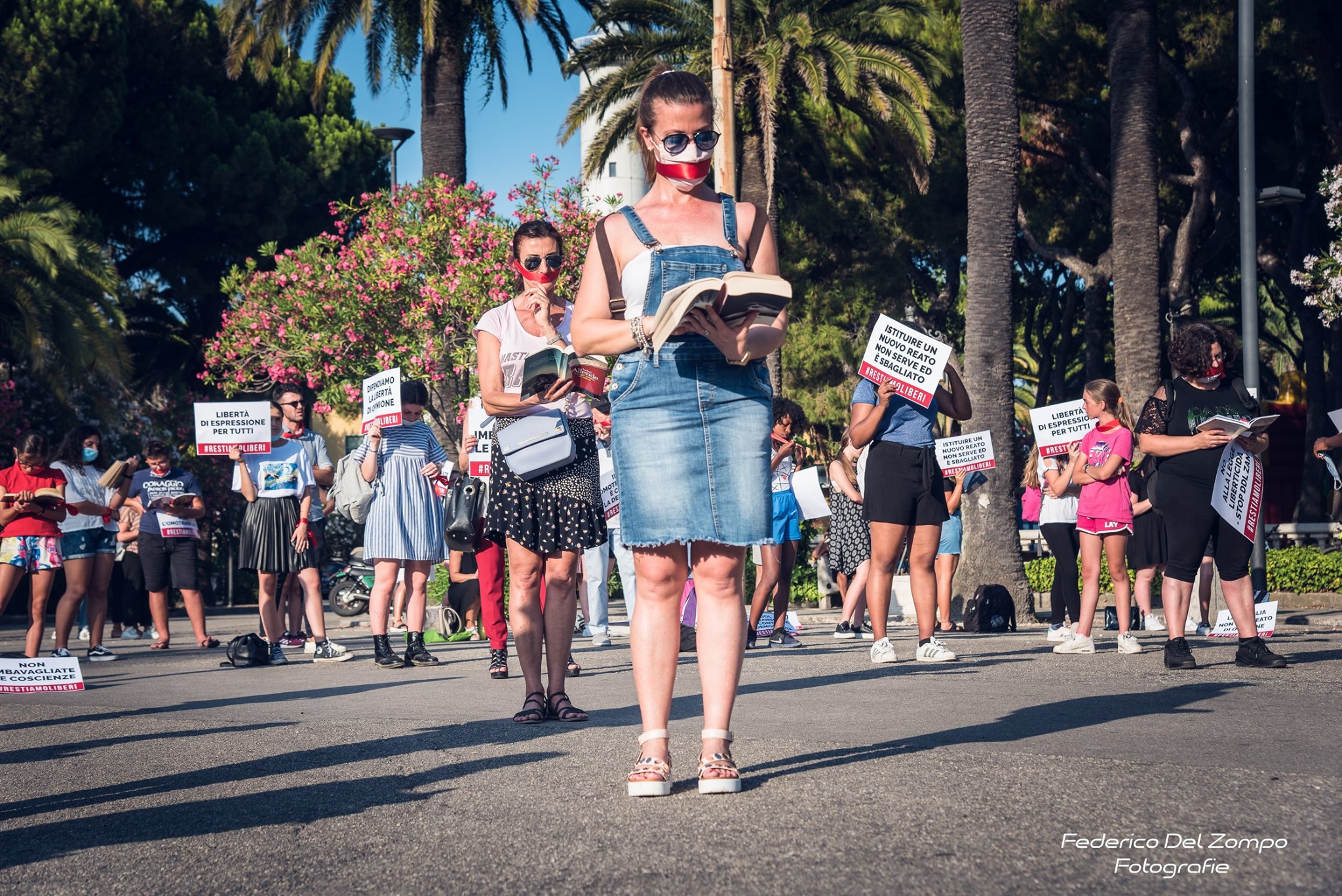 La piazza più centrale di San Benedetto si è così unita ad un altro centinaio di piazze sparse in tutta Italia, nel segno di una manifestazione che – a detta dei responsabili dell’Ordine pubblico presenti sul posto – ha rispettato in pieno i nuovi canoni di sicurezza sul distanziamento sociale anti-Coronavirus. Il tutto nel segno della tranquillità. A parte la lettura di un testo scritto da parte di alcuni organizzatori, l’evento si è svolto in silenzio. I presenti (un centinaio) sono rimasti fermi, leggendo un libro.