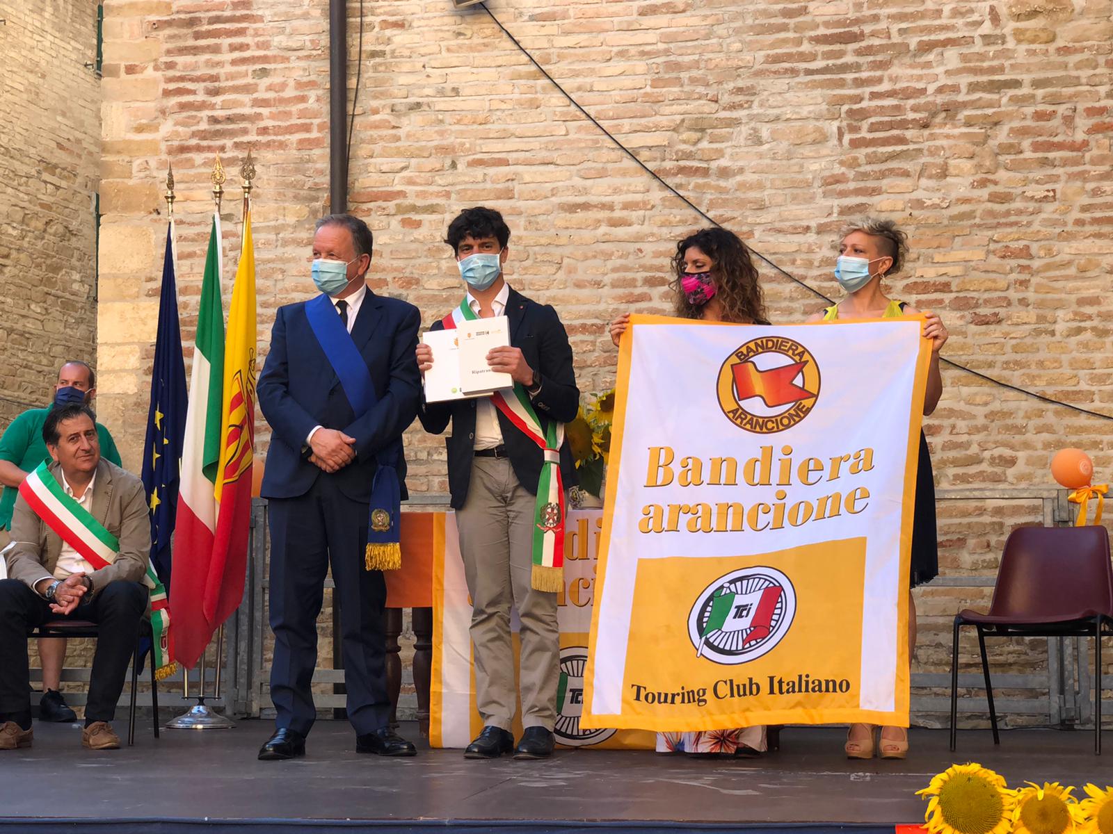 RIPATRANSONE – Ripatransone riceve anche per il 2020 la Bandiera Arancione del Touring Club Italiano. Si è svolta Sabato 25 luglio a Staffolo (Ancona) la Festa delle Bandiere Arancioni delle Marche con la cerimonia di consegna del prestigioso riconoscimento di qualità turistico-ambientale rivolto ai comuni dell’entroterra italiano che si distinguono per un’offerta di eccellenza e un’accoglienza di qualità. Per il Belvedere del Piceno si tratta della 19ª affermazione consecutiva dalla prima assegnazione del 2002. A premiare i 23 comuni marchigiani certificati erano presenti l’Assessore Regionale al Turismo Moreno Pieroni , il Console del TCI Maria Paola Corinaldesi , il Sindaco di Staffolo Sauro Ragni , il Presidente della Provincia di Ancona Luigi Cerioni ed il Vicepresidente dell’Associazione Nazionale Paesi Bandiera Arancione Giuliano Ciabocco . A ritirare il riconoscimento per la Città di Ripatransone era presente il Consigliere Comunale Delegato al Turismo e Bandiera Arancione Stefano Fraticelli. “Siamo orgogliosi di essere stati riconosciuti per il 19.esimo anno consecutivo come località di eccellenza dell’entroterra italiano dal prestigioso sodalizio del Touring Club Italiano”, dichiara Fraticelli. “Il Borgo di Ripatransone presenta delle eccellenze di indiscutibile valore ed il lavoro che stiamo compiendo è volto alla valorizzazione delle straordinarie risorse che lo contraddistinguono”. “La certificazione della Bandiera Arancione suggella la qualità della nostra realtà in termini di turismo e cultura dell’accoglienza”, afferma il Sindaco Alessandro Lucciarini De Vincenzi. “Siamo decisi a proseguire sulla strada intrapresa per fornire alla Città di Ripatransone nuove concrete opportunità di sviluppo socio-culturale ed economiche connesse al comparto turistico”, conclude il Sindaco.