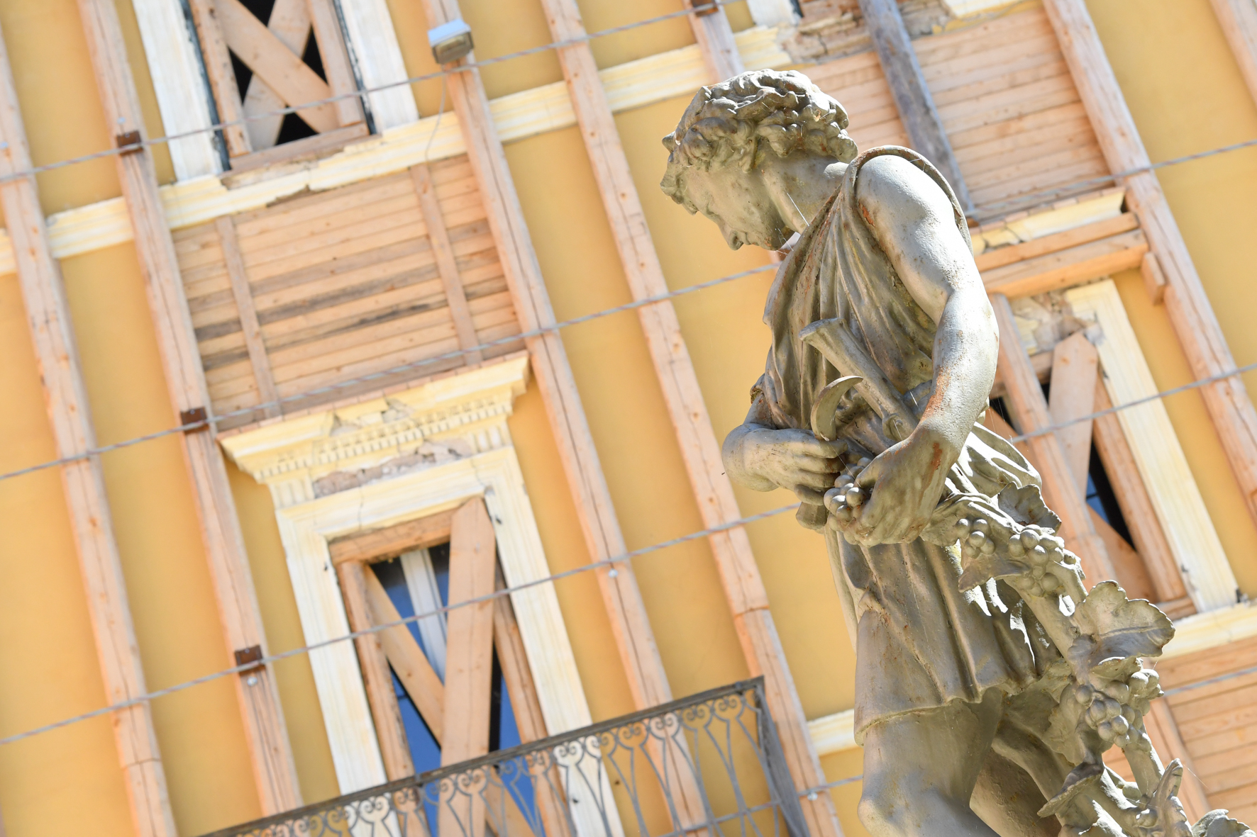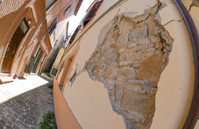 Non ci sono macerie anche se tutto è rimasto fermo a quattro anni fa. A raccontare il sisma del 24 agosto 2016 che ha devastato il Centro Italia sono le crepe aperte nei palazzi storici e nelle case, le porte spalancate nella fuga che lasciano intravedere le stanze interne ancora piene di ricordi, le finestre divelte, pezzi di calcinaccio in terra. Sul portone di una casa qualcuno ha messo un fiocco blu, nuovo di zecca, per festeggiare una nascita che ha il sapore della speranza, il vagito di chi è nato qui e qui vuole restare. Automobili schiacciate dai crolli oggi assomigliano a dei vasi pieni di erbacce. Chiese ingabbiate per evitare ulteriori crolli. E poi l’Università, con i suoi 700 anni di storia e oltre 7000 studenti, vero e proprio cuore pulsante di Camerino, e tanti altri luoghi di formazione, di ritrovo, attività ed esercizi commerciali, tutti chiusi. Camerino oggi, 4 anni dopo quel 24 agosto – ma non dimentichiamo le scosse di ottobre dello stesso anno – è forse il centro con la più grande zona rossa dell’intero cratere sismico.