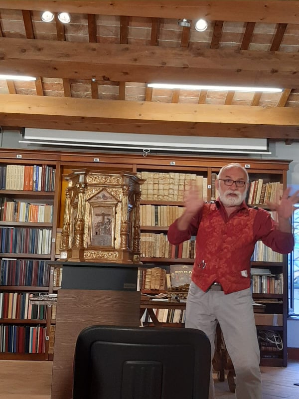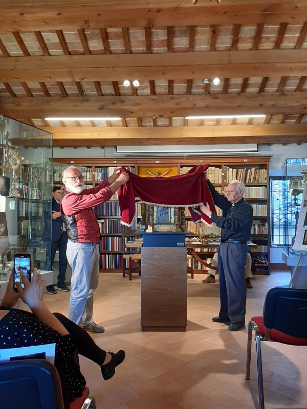 Il “Tabernacolo di Castignano” è stato presentato nella conferenza stampa tenuta al “Polo Museale di Castignano” Castignano (AP), venerdì 4 settembre 2020, ore 12,00, con la partecipazione di mons. Vincenzo Catani, del maestro Guerrino Lovato – Scultore, iconologo e del dott. Giorgio Foresti – Presidente Comitato Popolare El Greco a Bettona.