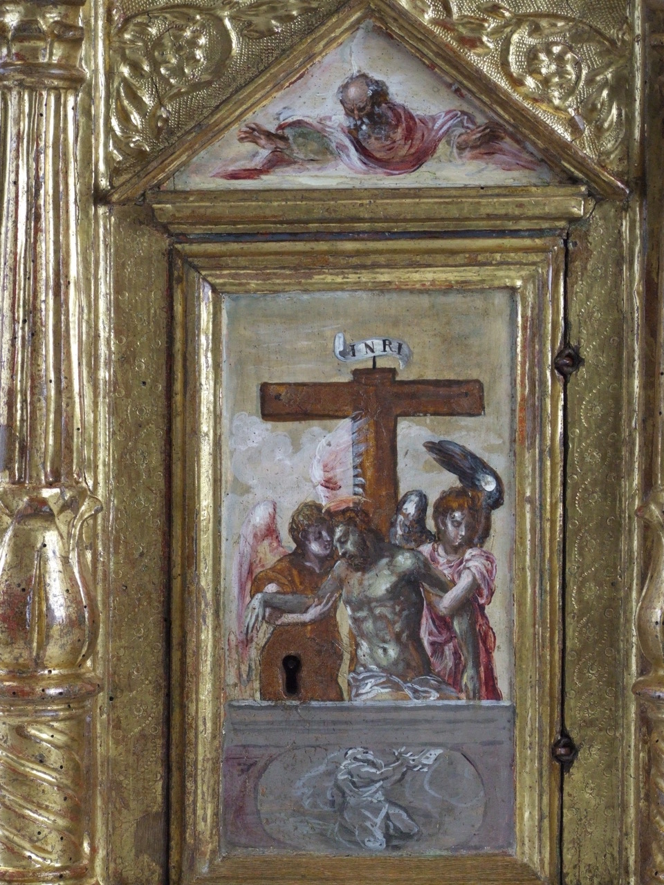 Il tabernacolo è datato al secondo semestre 1570, grazie ad un documento conservato nell’archivio parrocchiale nel libro delle “Uscite” della Confraternita del Sacramento. Dopo anni di abbandono il tabernacolo è stato restaurato nel 2012, evidenziando i magnifici colori e la nervosa e veloce dipintura, che rimanda ad una oramai sicura impronta del pittore cretese, naturalizzato spagnolo.