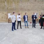 I venti borghi in settembre saranno animati da venti interventi d’arte contemporanea. Una boccata d’arte inaugurerà gli interventi artistici in contemporanea nel weekend 12, 13 settembre. Per la realizzazione dell’evento si è vista la collaborazione di Fondazione Elpis costituita dall’imprenditrice Marina Nissim, Galleria Continua galleria italiana d’arte contemporanea fondata da Mario Cristiani Lorenzo Fiaschi, Maurizio Rigillo, MSL, agenzia di Publicis Groupe specializzata in pubbliche relazioni, VMLY &R Italy agenzia di comunicazione integrata, IgersItalia professionisti nella produzione di contenuti digitali. Per la Regione Marche è stato scelto l’artista Matteo Fato, di Pescara che vanta un ottimo curriculum, ha preso parte a numerose mostre sia in Italia che all’estero. Il titolo scelto per la sua mostra è : “Fiamma d’amore viva ( il cielo e la Terra non appartengono alla parola). Il sindaco di Acquaviva Picena Rosetti ha detto: “Venti artisti, venti borghi e venti Regioni, in questo anno 2020, anno particolare, anno caratterizzato da una pandemia, da un’emergenza sanitaria che, purtroppo, ancora continua. Questa inaugurazione coinvolge tutte le Regioni italiane. Ringrazio Adele Cappelli curatrice della mostra, l’artista Matteo Fato che ha realizzato le bellissime opere esposte qui in Fortezza e nella chiesa di San Rocco, ringrazio Gianni Garrera, ringrazio il cav. Gaetani, Alessandro Sciarra e tutta l’amm.ne com.le di Acquaviva e i dipendenti che si sono adoperati alla realizzazione di questo evento, non siamo molti e a volte serve l’aiuto di tutti, in questo momento di pandemia è ancora più necessaria la collaborazione di tutti. Ringrazio Soriano per il buffet”. Cappelli ha detto: “Ringrazio il sindaco e l’amm.ne com.le, Fondazione Elpis e galleria Continua. Ringrazio tutti gli sponsor. Questa iniziative vuole essere anche un modo per guardare aventi, ringrazio Fato, ringrazio Marina Nissam. Vi racconto un aneddoto di questi giorni: quando Fato è entrato per la prima volta qui in fortezza ha detto: “Questo posto è una meraviglia, qui si entra in punta di piedi”. Per questo luogo Matteo ha uno sguardo incantato”. L’artista Matteo Fato ha detto: “Nelle opere potete vedere il paesaggio circostante, un bellissimo paesaggio che ho trasportato nei miei dipinti, potrei dire ho “rubato” il vostro paesaggio; mi ha fatto molto piacere esporre anche nella chiesa di san Rocco, in un luogo sacro, perché io credo nella sacralità della Terra che ci ospita, credo che il mondo sul quale viviamo si qualcosa di “sacro”. Un’altra opera è stata esposta in cima al Mastio, ed è una bandiera, è il panno sul quale ho pulito i pennelli. Per il titolo della mia mostra ho “rubato” le parole di Gianni Carrera e di Benedetto Croce: Fiamma d’amore viva (il cielo e la Terra non appartengono alla parola”. Gianni Garrera filologo e traduttore ha detto: “Questa mostra è dedicata al paesaggio, il paesaggio qui intorno e che può essere ammirato da qui. I dipinti che rappresentano paesaggi sono “cultura” del paesaggio e “coltivazione” del paesaggio, significa per esempio che mentre Fato dipinge un albero, si prende cura dell’albero stesso”.