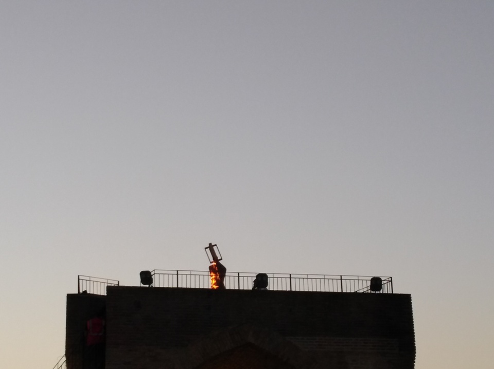 Dopo l’inaugurazione l’artista Matteo Fato ha bruciato la sua opera a dimostrare realmente la “fiamma viva”.