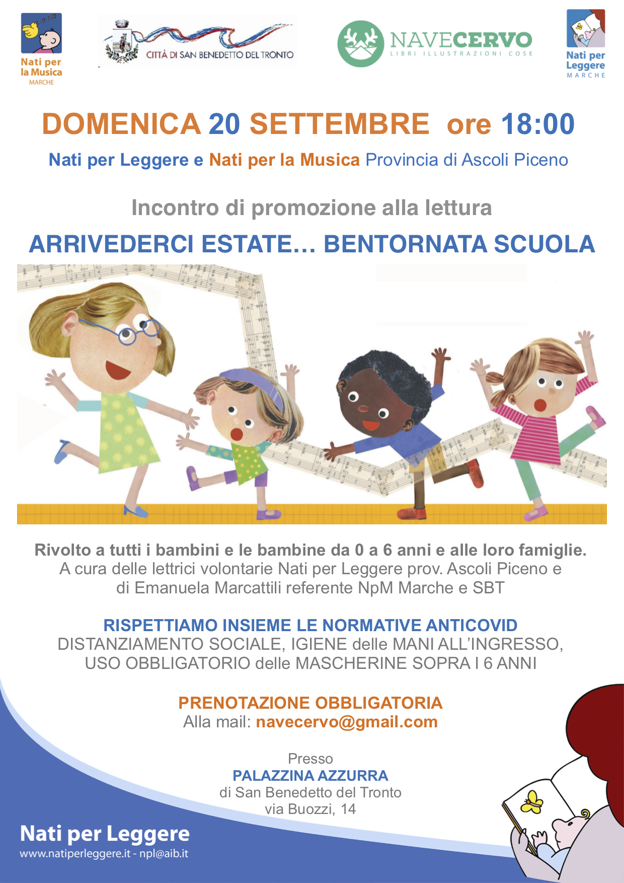 Il pomeriggio è a cura delle lettrici volontarie di “Nati per Leggere” della provincia di Ascoli Piceno e di Emanuela Marcattili – referente “Nati per la Musica” Marche e San Benedetto del Tronto