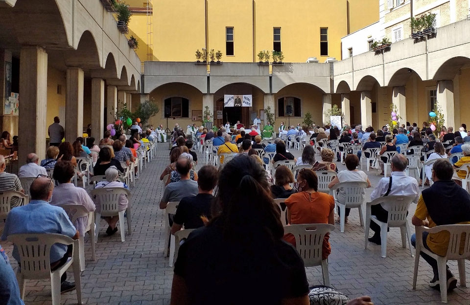 dOMENICA 20 settembre, si è svolta la Santa Messa nel cortile del Santuario di via Crispi per dare il benvenuto al nuovo parroco, presieduta dal Vescovo della diocesi di San Benedetto, Ripatransone e Montalto delle Marche, Monsignor Carlo Bresciani.