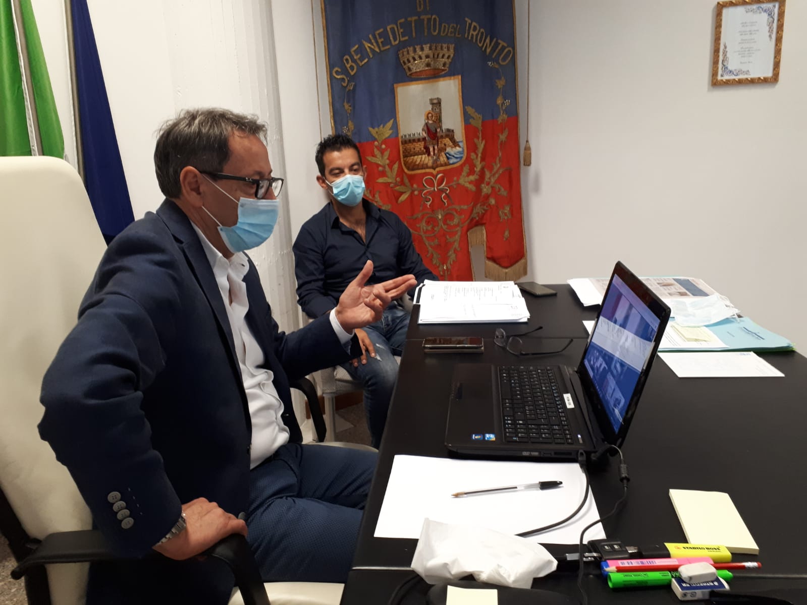 SAN BENEDETTO DEL TRONTO – Ieri mattina il sindaco Pasqualino Piunti, supportato dal responsabile del Servizio Sport Alessandro Amadio, ha partecipato alla videoconferenza con il Prefetto di Ascoli Stentella e i presidenti di Ascoli e Sambenedettese calcio sul tema della riapertura degli stadio.
