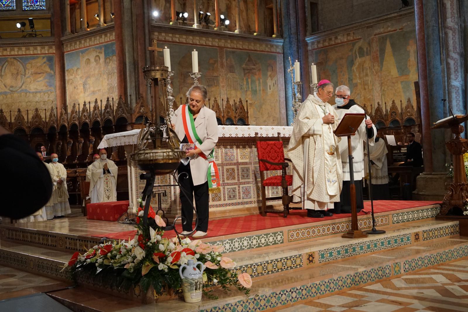 (ASSISI) – Il sindaco di Ancona, a nome di tutti i sindaci italiani, ha acceso, quest’anno, la lampada che arde perpetuamente, ad Assisi, sulla tomba di San Francesco. L’evento è avvenuto nel giorno della ricorrenza del Santo Patrono d’Italia. Valeria Mancinelli era accompagnata da una folta delegazione di primi cittadini marchigiani, dalla Conferenza episcopale marchigiana (Cem), dalla Regione Marche, presente con il presidente Francesco Acquaroli. “È un grande orgoglio, come prima uscita, essere qua per questo evento straordinario”, ha commentato il governatore”. L’accensione della lampada, a nome delle Regioni italiane, “è una grande responsabilità, una grande testimonianza. Racchiude anche un messaggio importante che bisogna testimoniare, per rilanciare i valori del francescanesimo, in questo momento così difficile a causa della crisi economica, della pandemia e della ricostruzione che lascia al di fuori delle proprie abitazioni ancora tante famiglie e intere comunità. Ad Assisi cogliamo lo stimolo a concretizzare il nostro impegno istituzionale per essere portatori dei valori su cui si fondano la nostra repubblica e la nostra democrazia”. La lampada è stata accesa durante il rito religioso che si è svolto nella Basilica Superiore del Sacro Convento, in diretta su Rai Uno e officiata da mons. Piero Coccia, arcivescovo metropolita di Pesaro e presidente Cem. “È un gesto che riveste un preciso significato simbolico, che indica la volontà di attingere dalla figura e dall’opera di San Francesco quella luce di cui abbiamo bisogno – ha detto nell’omelia – La nostra regione giunge a questo appuntamento fortemente provata da due pesanti esperienze: quella del terremoto del 2016 che l’ha colpita materialmente e spiritualmente con oltre 50 vittime e quella del coronavirus che ha fatto registrare quasi mille morti. Siamo una regione provata e affaticata ma non piegata! La nostra fede nel Signore ha sostenuto e sta sostenendo la nostra gente la quale, ancora una volta, sta dando prova di adattabilità, laboriosità ma anche di forte insofferenza, dovuta, soprattutto, ai mancati interventi da parte delle competenti autorità, in merito al sisma. Noi Pastori chiediamo alla politica e alle istituzioni un supplemento di impegno e di responsabilità”. Quello marchigiano, ha sottolineato, in apertura della Santa Messa, frate Mauro Gambetti, Custode del Sacro convento di Assisi, “può essere un modello per l’Italia che vuole rinascere ma non sarà sufficiente, come gli stessi cittadini delle Marche sperimentano nei loro territori. Viviamo infatti in una comunità globale. Questo nostro mondo è in balia delle onde della globalizzazione selvaggia e dei nazionalismi irrazionali: se vogliamo preparare il futuro, occorre anche guardare lontano”. Il sindaco di Ancona, capoluogo regionale, come da tradizione, ha illuminato la lampada votiva: “Con questo simbolico gesto esprimiamo l’amore che tutti gli italiani hanno per te e imploriamo la tua costante protezione. Vigila, Francesco, fratello santo, sul nostro popolo, illumina i governanti, veglia sulle sorti dell’Italia, guarda con benevolenza la nostra Regione Marche. Benedici tutti i lavoratori, dona loro e a tutte le famiglie prosperità e pace”, ha invocato il sindaco nel corso delle preghiere liturgiche. I 700 litri d’olio donati, oltre che per la lampada votive sono destinati alle associazioni caritative francescane e della diocesi di Assisi. Olio che è stato offerto dall’Associazione frantoiani delle Marche e da frantoi di Petritoli, Monteciccardo, Filottrano, Morro d’Alba, Sassocorvaro, Pesaro, Ancona. Successivamente il presidente del Consiglio dei ministri Giuseppe Conte ha pronunciato il “Messaggio all’Italia” dalla Loggia del Sacro Convento. Sono seguiti i saluti del governatore Acquaroli e delle autorità ai fedeli, marchigiani e umbri, presenti sulla Piazza inferiore di San Francesco.