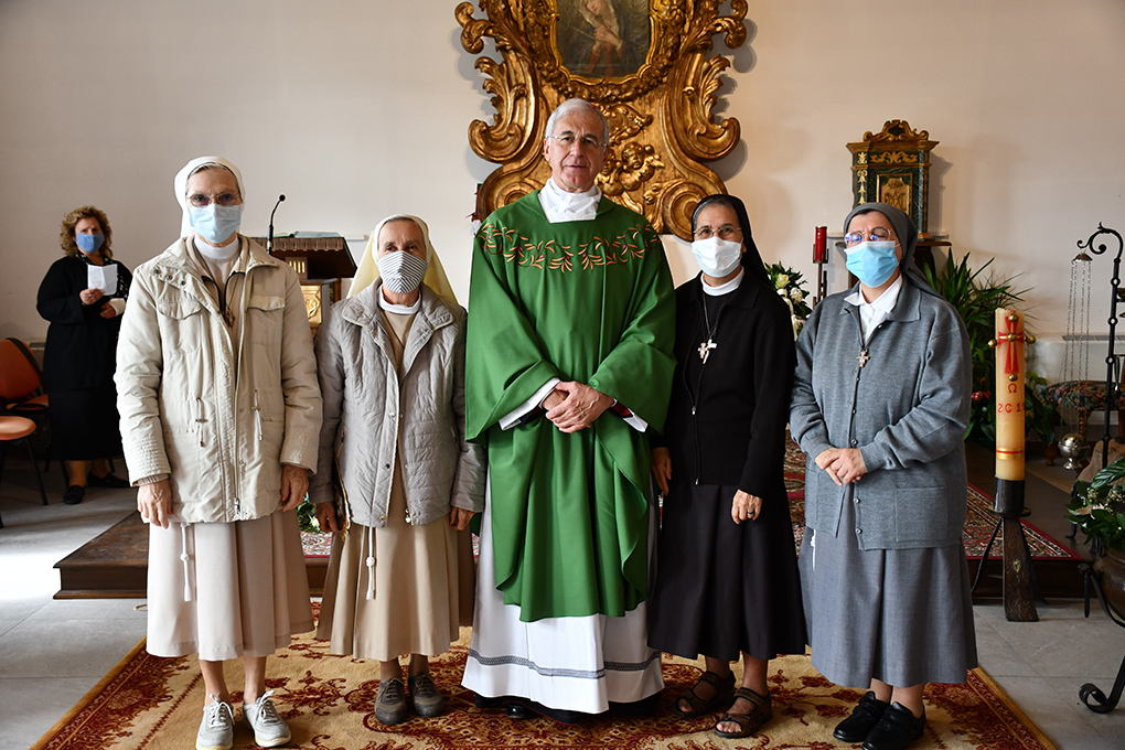 A Norcia, domenica 4 ottobre 2020, presso il Centro di Comunità della Madonna delle Grazie, l’arcivescovo di Spoleto-Norcia mons. Renato Boccardo ha presieduto la Messa per presentare alla popolazione la fraternità intercongregazionale “Francescane Missionarie della Chiesa”: quattro suore, di quattro Congregazioni francescane differenti, al servizio pastorale della gente di Norcia e delle sue frazioni, ancora segnata dalle ferite sanguinanti dei terremoti del 2016. Vivranno nella casa parrocchiale di Savelli di Norcia. Sono: suor Loretta Pontalto delle Piccole Suore della Sacra Famiglia, suor Marisa Cadamuro delle Suore Francescane di Cristo Re, suor Chiara Caselli delle Suore Francescane Missionario di Cristo, suor Damiana Zedda delle Suore Francescane Missionarie di Susa.