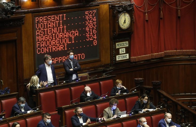 La settimana parlamentare era iniziata con il voto di fiducia sul “decreto agosto” cui ha fatto seguito la definitiva conversione del provvedimento in legge. Poi è stata la volta dell’esame delle relazioni sulle linee-guida per il piano di ripresa con i fondi straordinari europei. Quindi è toccato al presidente del Consiglio illustrare la posizione italiana in vista del vertice di Bruxelles. In entrambi i casi sono state approvate le risoluzioni presentate dai gruppi che sostengono l’esecutivo. Infine, il passaggio più delicato: il voto sulla Nadef, la nota che aggiorna le analisi e le previsioni economiche su cui sarà impostata la manovra, e soprattutto sull’annessa richiesta di un ulteriore scostamento di bilancio, vista la necessità di reperire nuovi fondi in deficit. Un’operazione che, in base all’art. 81 della Costituzione, richiede la maggioranza assoluta dei membri di ciascun ramo del Parlamento. Di qui l’apprensione per le ripercussioni dei contagi e delle quarantene, tanto più al Senato dove i numeri delle forze governative sono molto risicati e bisogna comunque raggiungere quota 161. I voti favorevoli allo scostamento di bilancio sono stati 164, mentre l’opposizione si è astenuta. Una posizione di non aperta belligeranza, ma che non ha offerto sponde all’esecutivo in affanno. Anche a luglio, in un’analoga circostanza, il centro-destra aveva deciso di astenersi, mentre all’inizio della pandemia aveva votato insieme alle forze di governo. Peraltro anche martedì, nell’esame delle linee-guida per l’impiego dei fondi del piano europeo, l’opposizione aveva optato per l’astensione e in quel caso la scelta aveva avuto un significato distensivo più chiaro dato che l’esecutivo non aveva il problema di raggiungere a ogni costo la maggioranza assoluta.