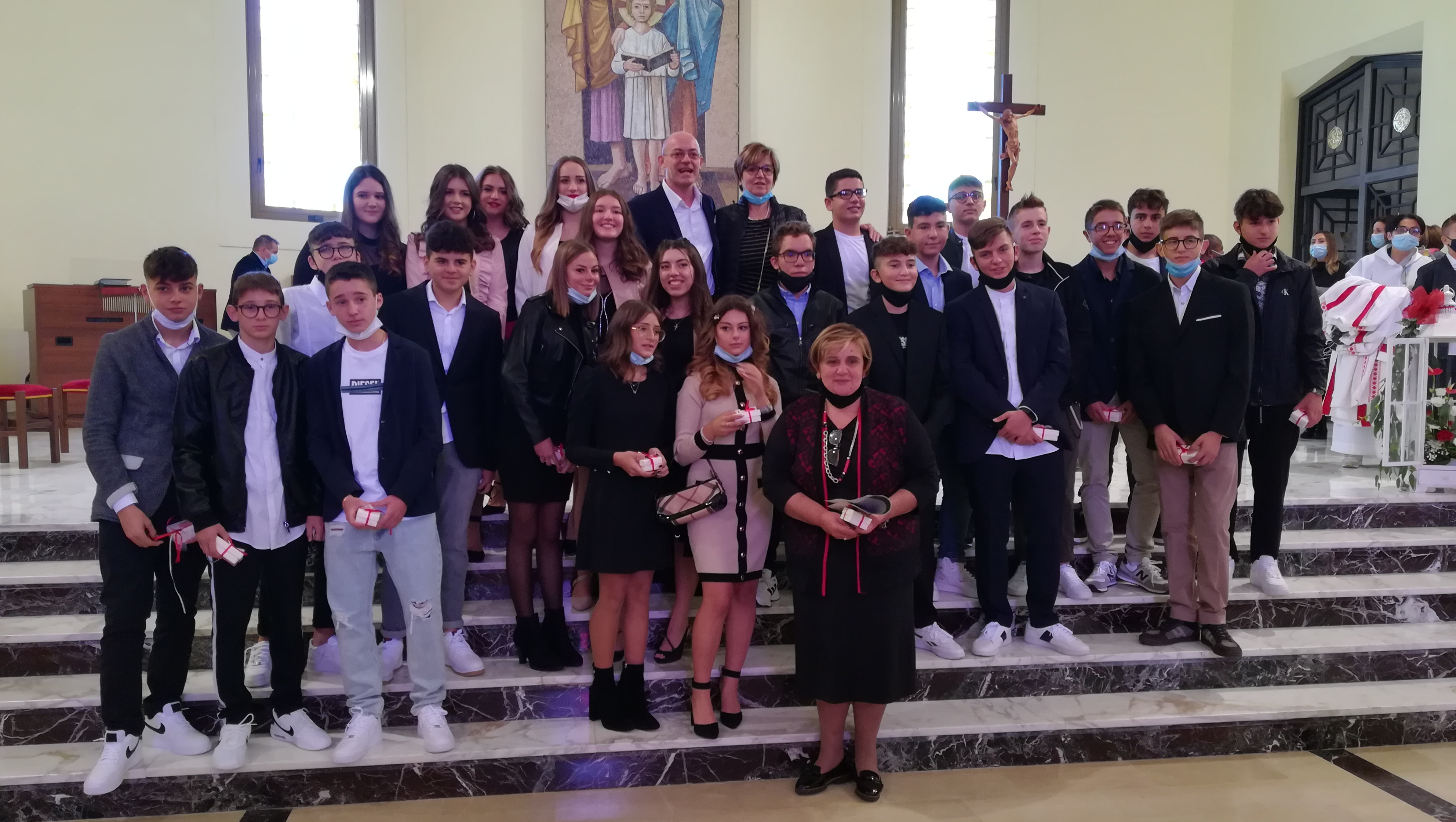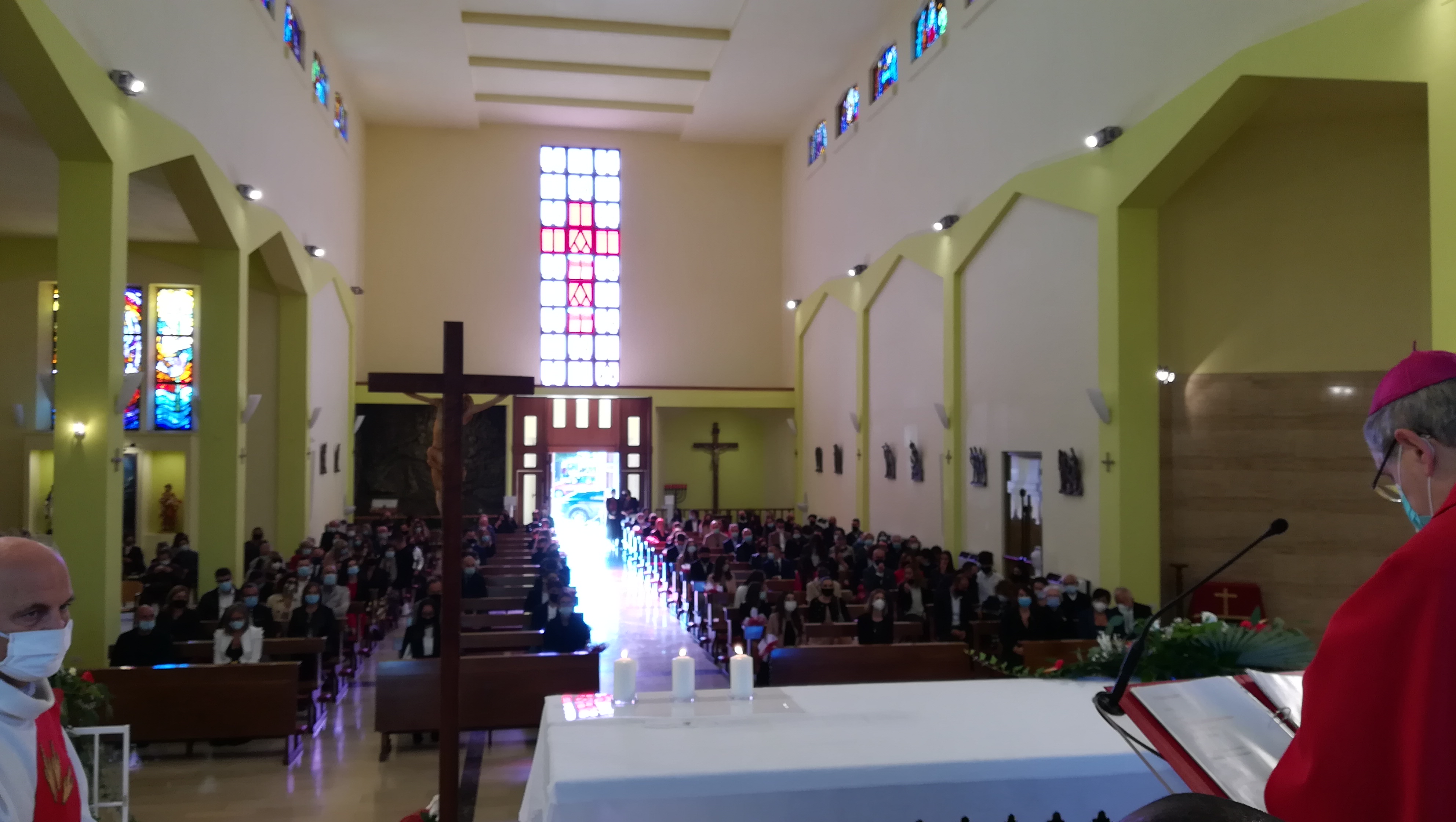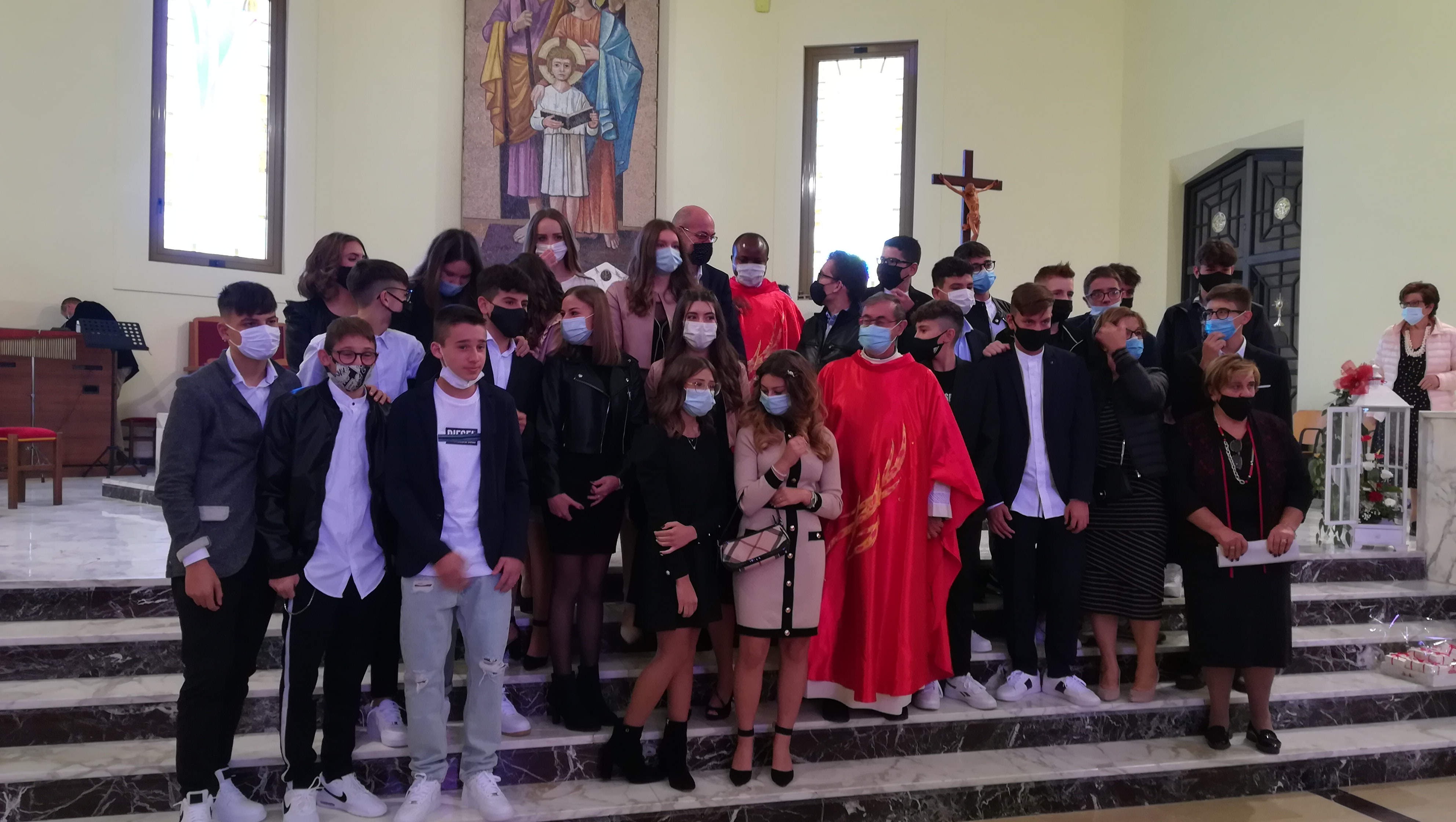 Nonostante il rispetto delle regole anticovid, le festa è stata sobria e partecipata, sentita e commossa. Il vescovo ha sottolineato come in questo momento di difficoltà, la speranza debba animare i cuori insieme con la prudenza e l’attenzione per la salute, con piena fiducia in Dio. Il parroco ha ringraziato i ragazzi e le rispettive famiglie presenti. “Un ringraziamento particolare ai catechisti per aver accompagnato in questi otto anni i cresimandi. Grazie alle famiglie per la collaborazione e la presenza, grazie al coro ed ai collaboratori per lo svolgimento bello e decoroso della liturgia. Grazie a Dio per averci regalato una festa emozionante in un momento storico difficile. Voi ragazzi possiate diventare testimoni di Cristo nel mondo”.