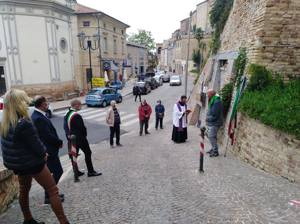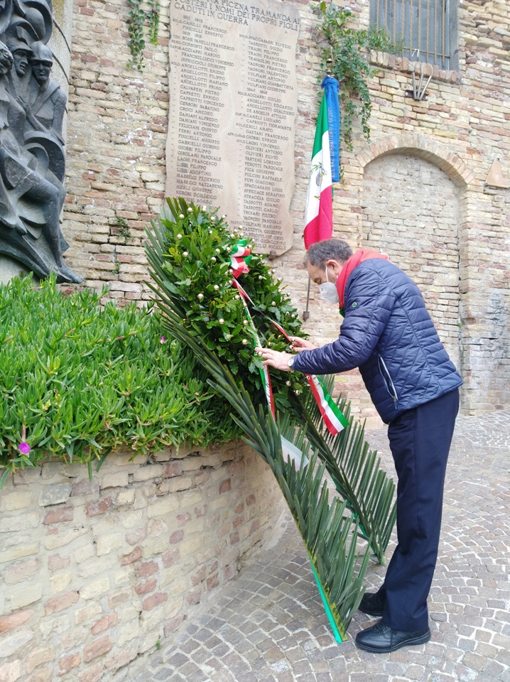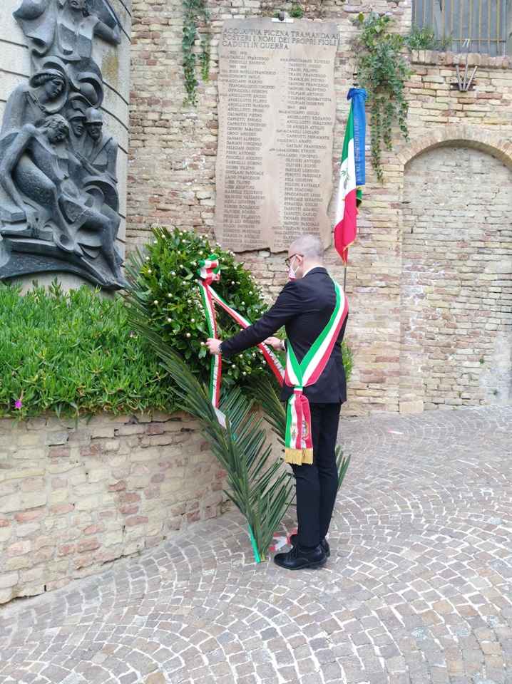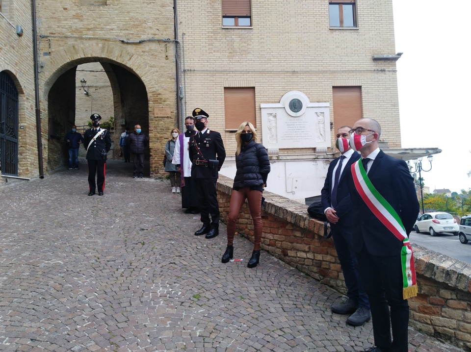 ACQUAVIVA PICENA – Mercoledì 4 novembre, giornata dell’Unità Nazionale e delle Forze Armate, ad Acquaviva Picena l’Associazione Nazionale Combattenti e Reduci sez. di Acquaviva ha voluto onorare i caduti di tutte le guerre e deporre una corona sotto il monumento in onore dei combattenti acquavivani. Il presidente dell’A.N.C.R. di Acquaviva, cav. Duilio Grilli, ha sottolineato che il virus Covid che ha colpito il mondo intero non ha permesso che la manifestazione si svolgesse nello stesso modo degli anni passati, ma l’associazione ha voluto, anche se in modo più riservato e rispettando le norme vigenti, onorare i caduti. Il loro sacrificio non deve essere dimenticato. Il cav. Grilli ha poi ringraziato tutti i presenti, il sindaco Rosetti, l’Amm.ne Com.le, il parroco don Pierluigi, l’Arma dei Carabinieri, i membri delle varie associazioni combattentistiche e d’Arma. Ha dato l’appuntamento all’anno prossimo sperando di poter celebrare la Giornata del 4 novembre con tutti gli onori. Anche il sindaco Rosetti ha ricordato i combattenti delle guerre e ha rivolto un pensiero a tutti coloro che in questo momento si stanno impegnando, in diversi campi, a fronteggiare la pandemia coronavirus. La corona, prima di essere posta sotto il monumento ai caduti, è stata benedetta dal parroco.