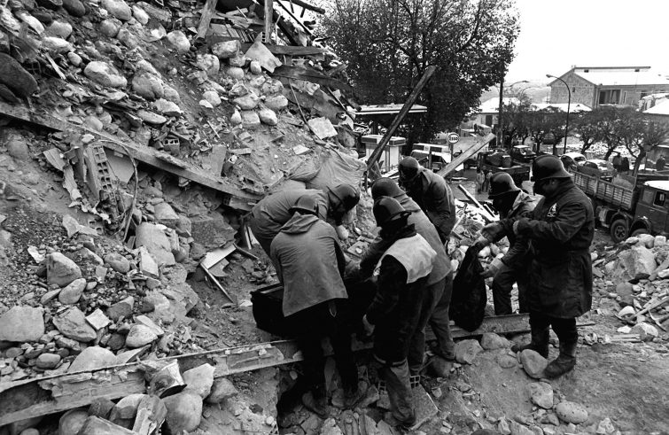 Ricordo qui un solo fatto occorso a me a Lioni, dove abbiamo svolta la nostra piccola collaborazione manuale (i miei amici infermieri avranno a loro volta molte cose da raccontare e chissà che non riusciamo a ricuperare le memorie di tutti loro!). Si stava scavando-rimuovendo manualmente le macerie di una casa di più piani in cemento armato, che nel crollo si era avvitata su se stessa al punto che i piani alti di est si trovavano quasi a ovest. Avevamo assistito all’ estrazione dalle macerie di questa casa di alcune persone dei piani alti che si capiva erano state sorprese dal terremoto mentre giocavano a carte.