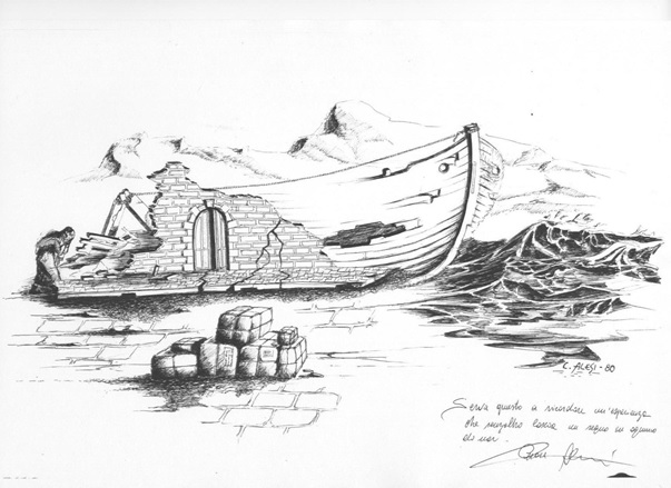 Non avevamo macchina fotografica, né avremmo ardito usarla, ma Cesare Alesi ha fermato magistralmente con la penna non solo un’ immagine di casa diroccata di Lioni, che noi tutti ben ricordiamo, ma anche lo spessore dell’esperienza di distruzione e di dolore che ci ha attraversato in quei giorni..