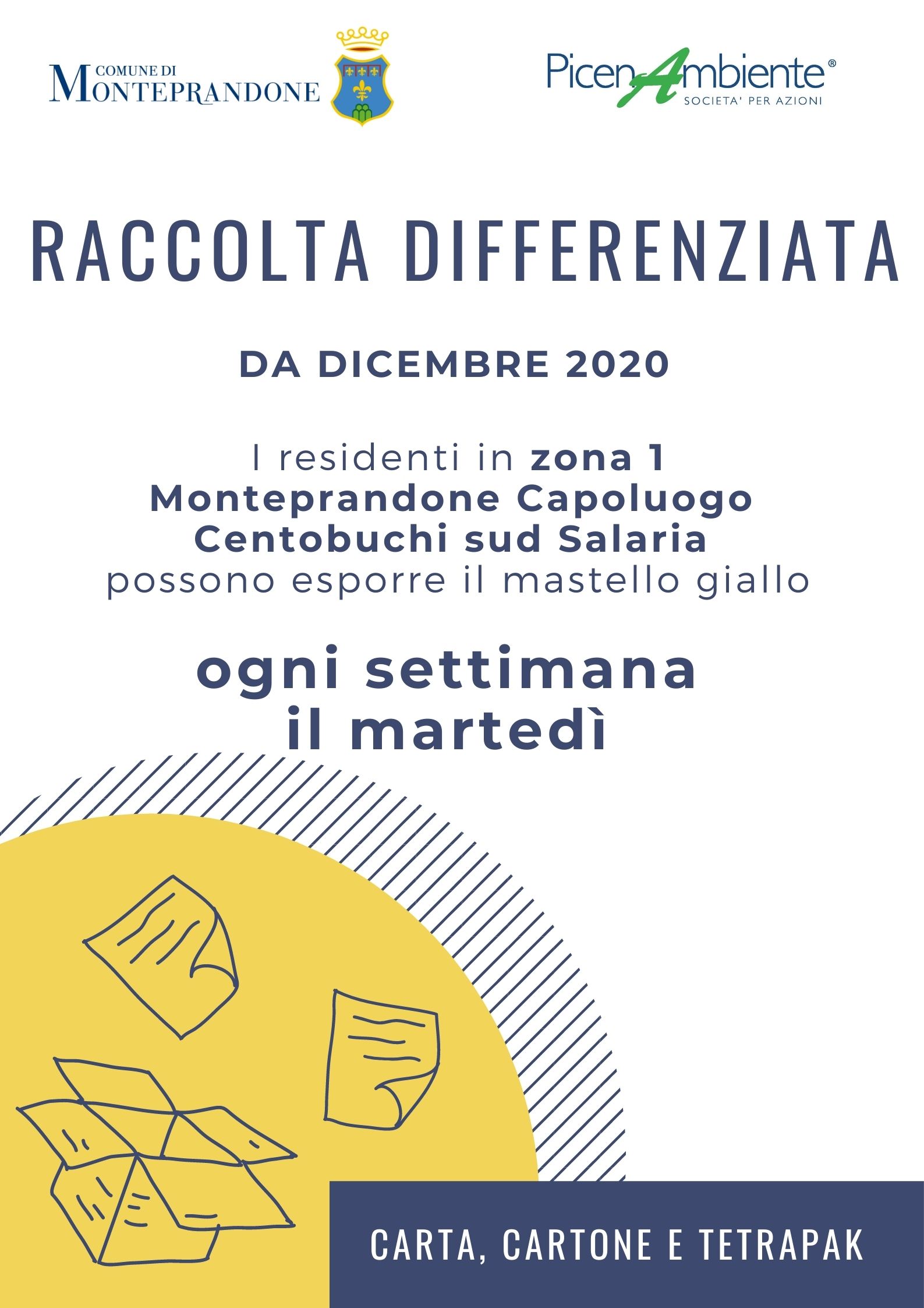 MONTEPRANDONE – In accordo con PicenAmbiente, l’Amministrazione comunale di Monteprandone ha deciso di ampliare il servizio di raccolta differenziata della carta nella zona 1.