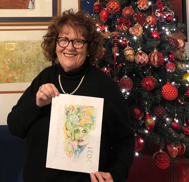Il calendario realizzato con la tecnica ad acquerello e il progetto grafico del prof. Ticchiarelli, rappresenta un volto di donna fra foglie ed arbusti.