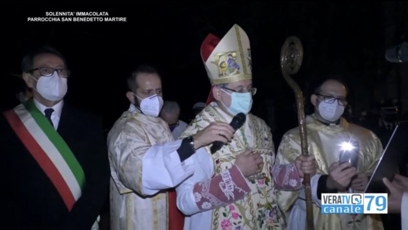 Ma ciò che negli anni passati era gratitudine per un ricordo, oggi diventa invocazione di protezione e misericordia a causa del coronavirus: «Il parroco Don Guido ha scritto che la solennità quest’anno ha un sapore diverso dal solito: un altro morbo sta perseguitando noi e il mondo intero e impone limitazioni che neppure la guerra fu in grado di imporre. Lo vediamo anche in questa celebrazione, per le rigide modalità con le quali viene rinnovato l’antico voto: c’è un numero limitato di presenze ed è richiesta un’adeguata distanza interpersonale. Attraverso il Sindaco che rappresenta tutta la cittadinanza, noi questa sera rinnoviamo il voto, non solo come encomiabile fedeltà a quanto promesso nel passato, ma anche come nuova invocazione alla Madre Immacolata che chiamiamo in nostro aiuto perché con la sua intercessione ci liberi dal nuovo e insidioso morbo che minaccia noi tutti».