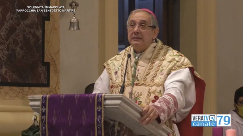 Nella sua omelia il Vescovo Carlo ha esordito ricordando le origini del voto cittadino: «Come ogni anno vogliamo oggi rinnovare la nostra devozione a Maria Immacolata, con particolare solennità, sia per la grande devozione che portiamo a Maria, sia per fedeltà al voto che la cittadinanza di San Benedetto ha fatto a Maria Immacolata nel 1855, ben 165 anni fa. In quell’anno la nostra Città era aggredita dal colera, moltissimi furono i morti e la popolazione rischiava di essere decimata. Il popolo si rivolse a Maria Immacolata invocando la sua protezione e facendo voto di perenne devozione a lei con la solenne celebrazione annuale di una Novena. Da un anno il Papa Pio IX aveva proclamato il dogma della sua Immacolata Concezione che con questo voto il popolo confermava la sua fede nell’Immacolata, ricorrendo appunto al suo aiuto. Il morbo si fermò e da allora la popolazione con le autorità civili è sempre stata fedele a questo voto, anche, come ricordiamo molto volentieri, in tempo di guerra».