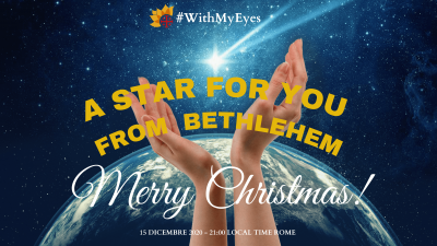 Si svolgerà oggi, 15 dicembre, (alle 21, ora italiana) in diretta streaming da Betlemme l’edizione speciale di “#WithMyEyes Sguardi sulla Terra Santa” per gli auguri di Natale, con padre Ibrahim Faltas. Con lui saranno collegati, tra gli altri, anche padre Alberto Pari e i ragazzi della scuola di musica “Magnificat” da Gerusalemme; padre Kevork Sarkisyan da Yerevan in Armenia; Marianna El Rahy e Maroun Mazawi da Beirut in Libano; padre Firas Lutfi da Aleppo in Siria; il monaco Wisam Karo da Mosul in Iraq. Collegamenti anche dalla Guinea Bissau e dal Venezuela. Conducono la serata: padre Sergio Rotasperti da Freiburg in Germania, Marina Venturini e don Marco Di Giorgio da Pesaro e Alberto Tosi da Sassuolo. Partecipano alla serata i giornalisti: Francesca Cipolloni da Macerata; Simonetta Marfoglia da Pesaro; Vincenzo Varagona da Ancona; Francesca Palombi da Roma.