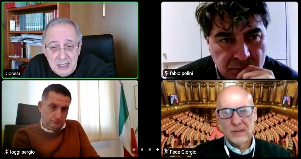 A seguire, l’intervento del direttore dell’Ufficio Comunicazioni Sociali e vice direttore della Caritas Diocesana, Prof. Fernando Palestini: “A livello spirituale individuale, questa pandemia potrebbe portarci a ritrovare ciò che veramente è essenziale per la nostra vita: penso alle amicizie e al senso della vita. A livello sociale vanno sicuramente privilegiate tutte quelle scelte urgenti ed indispensabili: mi sembra che, in questo particolare momento, siano due i settori da sostenere e monitorare, quello dell’istruzione e quello della sanità. Al di là dei numeri tristissimi che leggiamo in questa pandemia, credo che noi giochiamo la nostra partita in questi ambiti, perché è qui che si tocca con mano quello che riusciamo a fare.