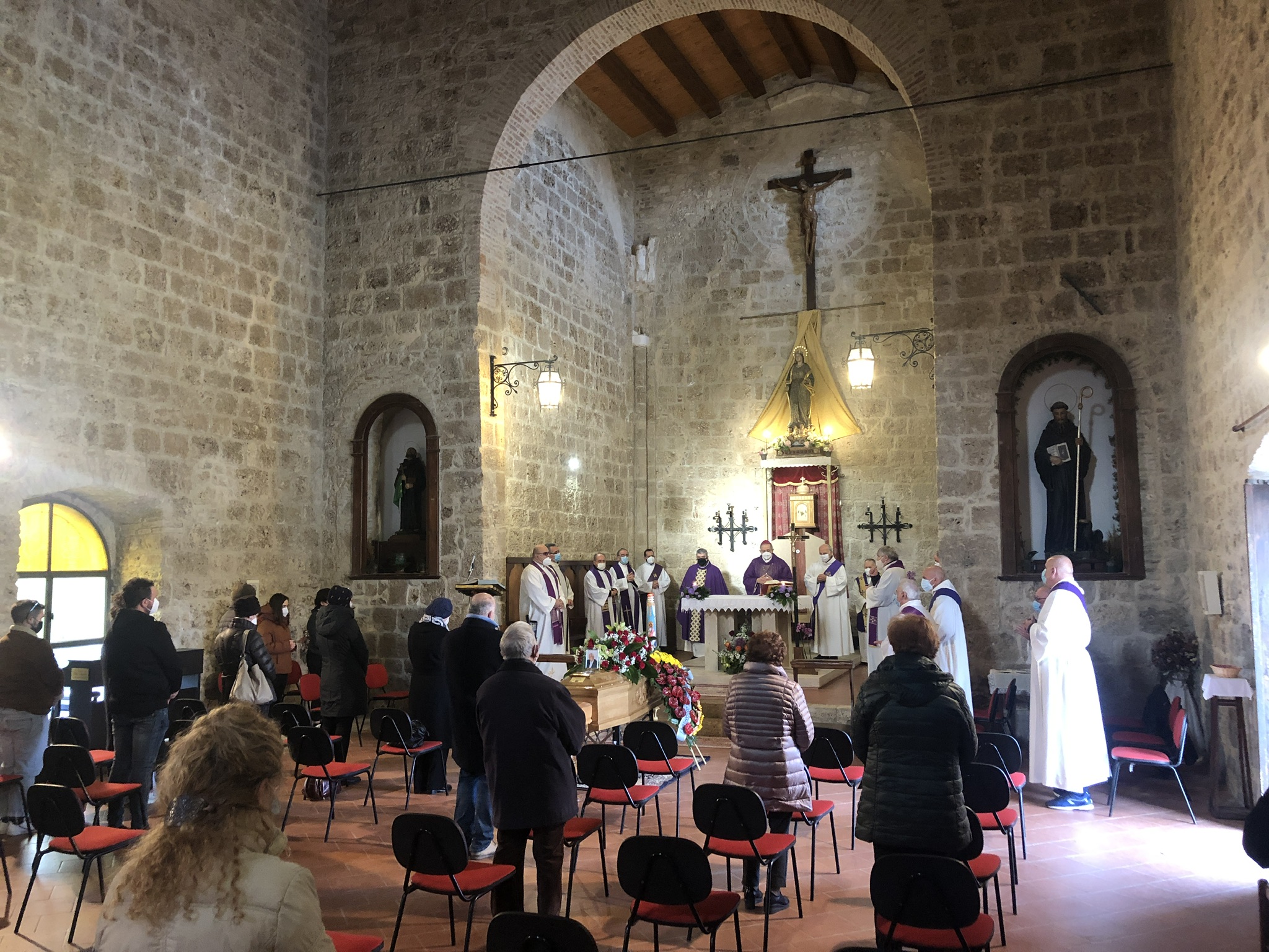 Mons. Bresciani ha ricordato poi l’impegno di Galliano per l’Abbazia di Santa Maria in Montesanto: «Posso dire che Galliano questo lo aveva compreso e lo viveva con grande amore anche nei confronti di questa abbazia per la quale non risparmiava le sue fatiche: ci teneva molto e ha lavorato perché fosse ristrutturata e rimessa in sesto e tornasse al suo antico splendore, come ora la possiamo vedere. Ma non è che ci teneva per le mura in sé – anche se certamente si è preso cura anche di queste – ma perché diceva che la gente doveva trovarsi bene e sentire che c’è una cura per loro quando frequentano questo luogo. Galliano viveva di amore per Dio e per la Chiesa e di questo deve essere fatto ogni cristiano perché è questo che ci rende pronti all’incontro con Dio quando questo avverrà».