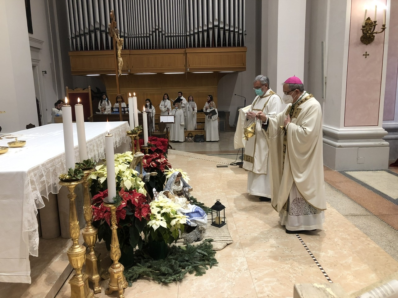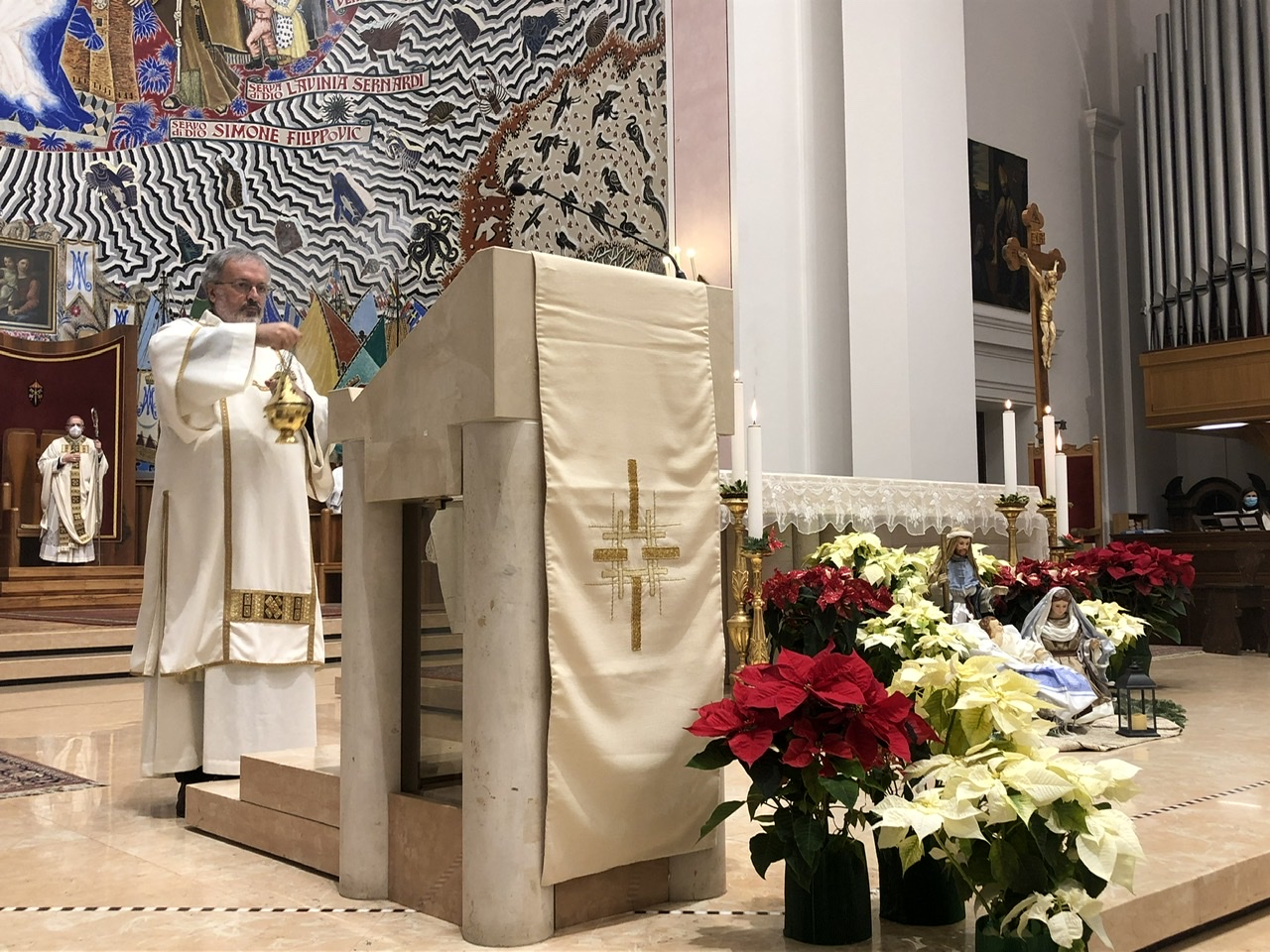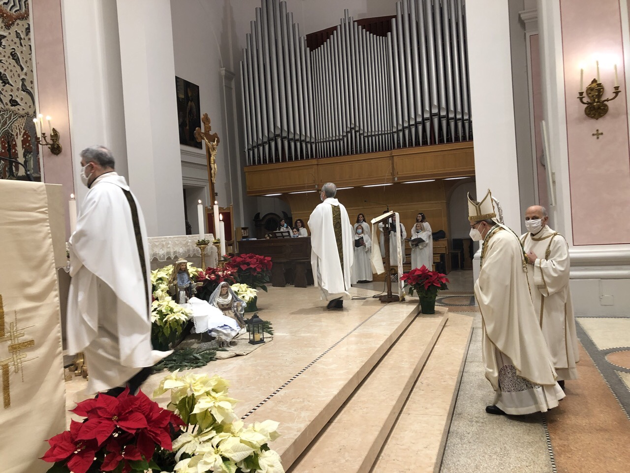– Il Vescovo Carlo Bresciani, insieme ai sacerdoti della Cattedrale don Patrizio Spina, don Romualdo Scarponi e don Luciano Paci, ha celebrato la Messa della Notte di Natale che ha avuto inizio alle 19.30 al fine di rispettare il coprifuoco previsto a partire dalle ore 22.00. Hanno assistito al sacro rito i diaconi Walter Gandolfi e Pietro Mazzocchi. La funzione si è svolta nel rispetto delle norme anticovid – distanziamento sociale e obbligo di indossare i dispositivi di sicurezza – misure alle quali i fedeli si sono ormai abituati.