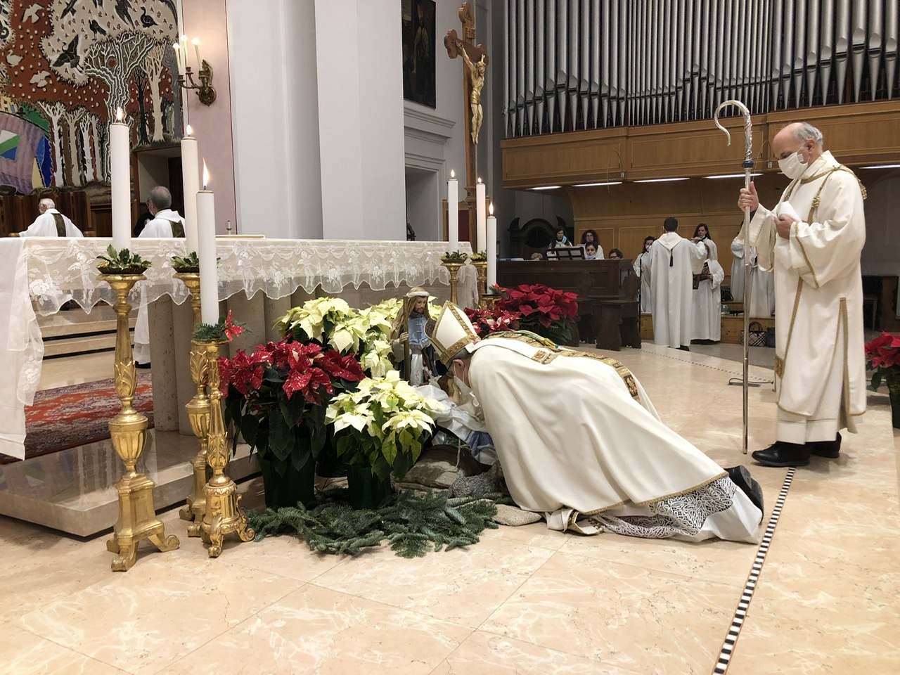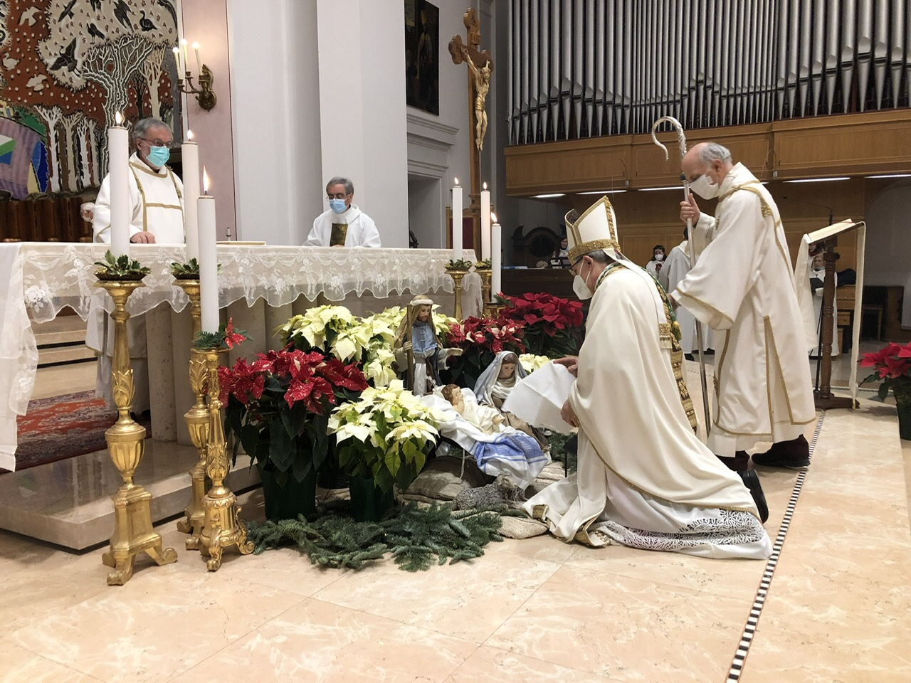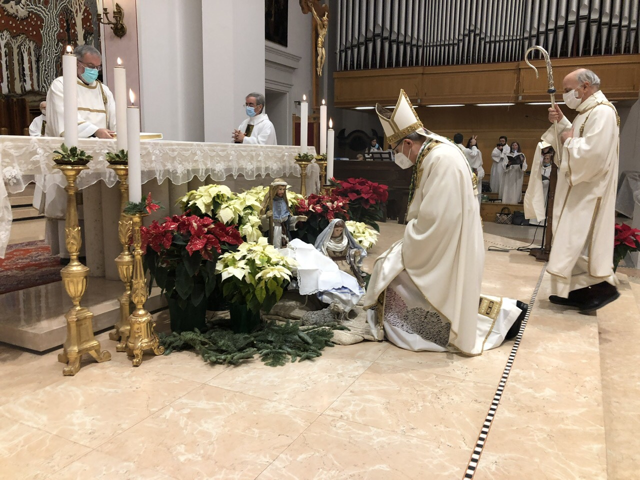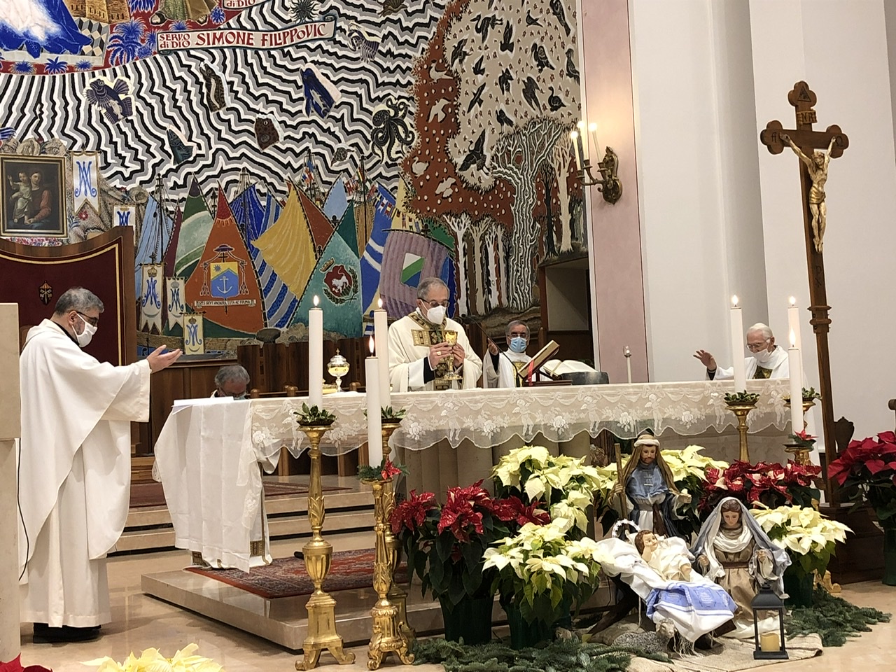 – Il Vescovo Carlo Bresciani, insieme ai sacerdoti della Cattedrale don Patrizio Spina, don Romualdo Scarponi e don Luciano Paci, ha celebrato la Messa della Notte di Natale che ha avuto inizio alle 19.30 al fine di rispettare il coprifuoco previsto a partire dalle ore 22.00. Hanno assistito al sacro rito i diaconi Walter Gandolfi e Pietro Mazzocchi. La funzione si è svolta nel rispetto delle norme anticovid – distanziamento sociale e obbligo di indossare i dispositivi di sicurezza – misure alle quali i fedeli si sono ormai abituati.
