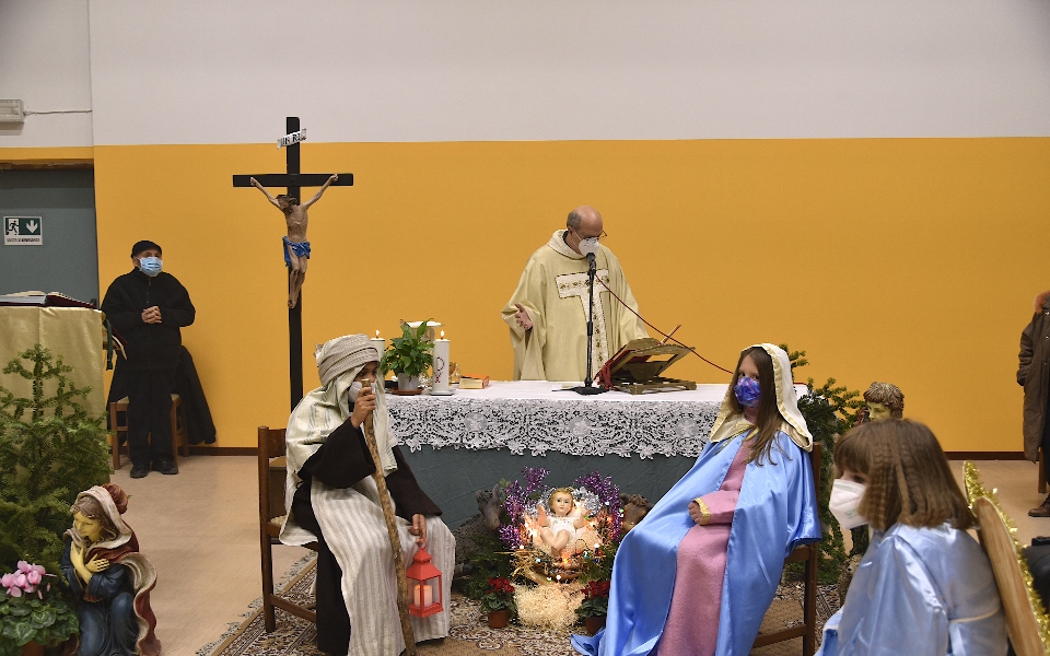 In questo anno. per rispettare le norme vigenti al tempo del Covid-19, ci siamo ritrovati alle 18,30, nella Palestra Comunale per la perdurante indisponibilità (causa Sisma) delle chiese del paese, distanziati, con le mascherine e sanificati, ancora una volta senza la Stella e con l’impossibilità di potersi scambiare i consueti abbracci! Ma tutti si era, però, concentrati e felici per l’evento della “Nascita di Gesù”!