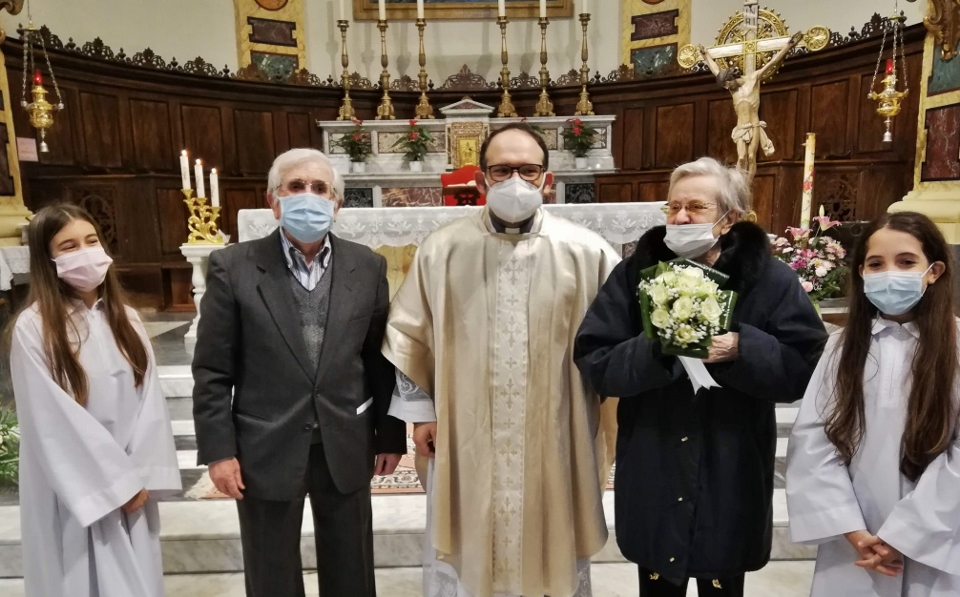 SAN BENEDETTO DEL TRONTO – Sabato 9 gennaio presso la chiesa di San Benedetto Martire i coniugi Pietro ed Eola Pompei si sono ritrovati insieme con parenti e amici per ringraziare il Signore per i 60 anni di matrimonio. La Santa Messa è stata presieduta dal parroco don Guido Coccia.