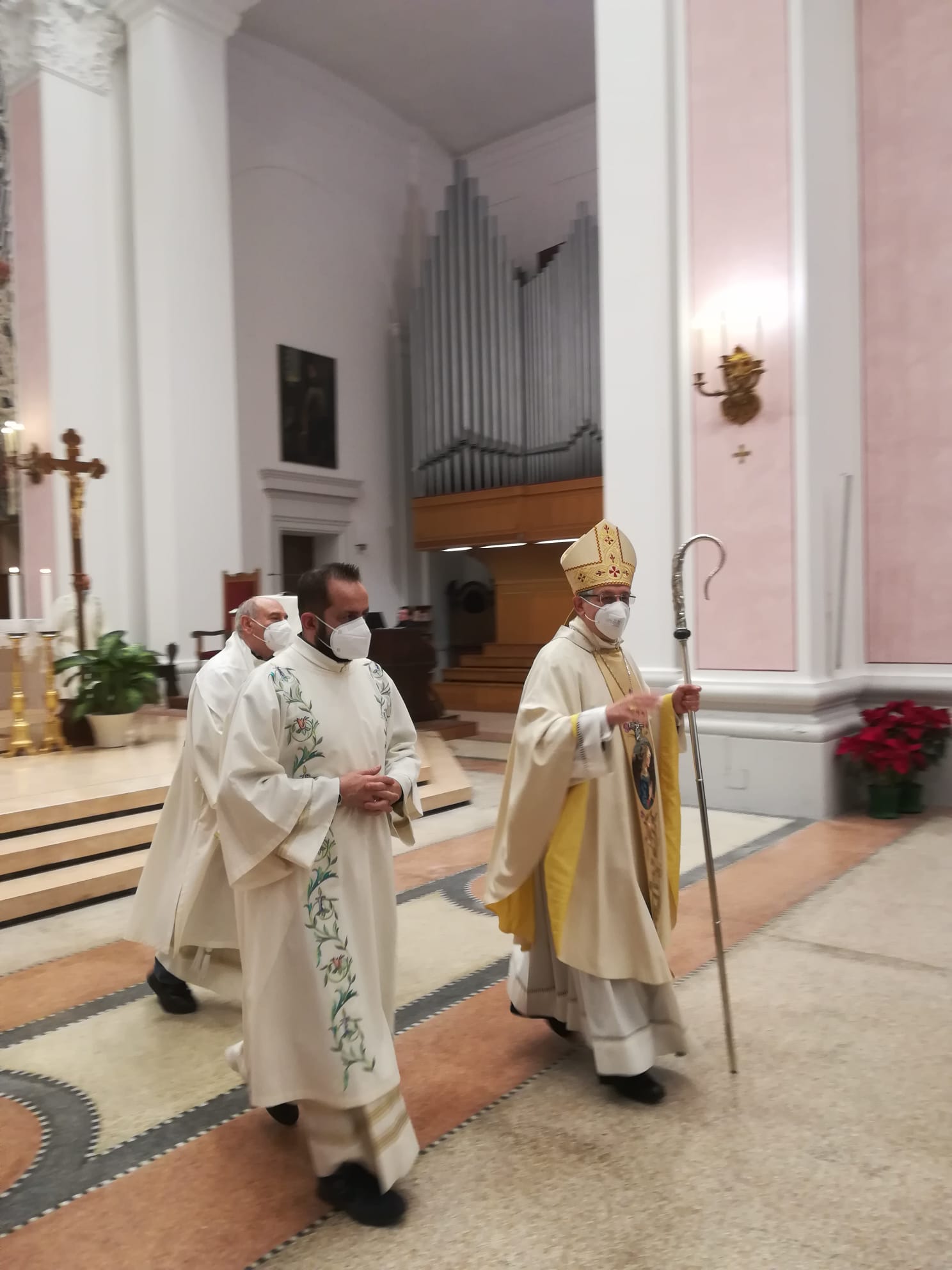 SAN BENEDETTO DEL TRONTO – Si è celebrata ieri, 11 Gennaio 2021, alle ore 18:00, presso la cattedrale della Madonna della Marina la santa messa per festeggiare il settimo anniversario della consacrazione episcopale del nostro vescovo Carlo Bresciani. A concelebrare diversi sacerdoti in rappresentanza di tutti i presbiteri della diocesi, tra cui il vicario generale don Patrizio Spina, il quale ha fatto gli onori di casa: “Siamo lieti di festeggiare l’anniversario di ordinazione del nostro vescovo Carlo. Purtroppo le norme in vigore per contrastare la diffusione del virus covid-19 impongono numerose restrizioni che non hanno permesso a molti di partecipare; tuttavia, sebbene il numero dei presenti sia ridotto, molti fedeli e molti altri sacerdoti in questo momento sono uniti con noi in preghiera.”