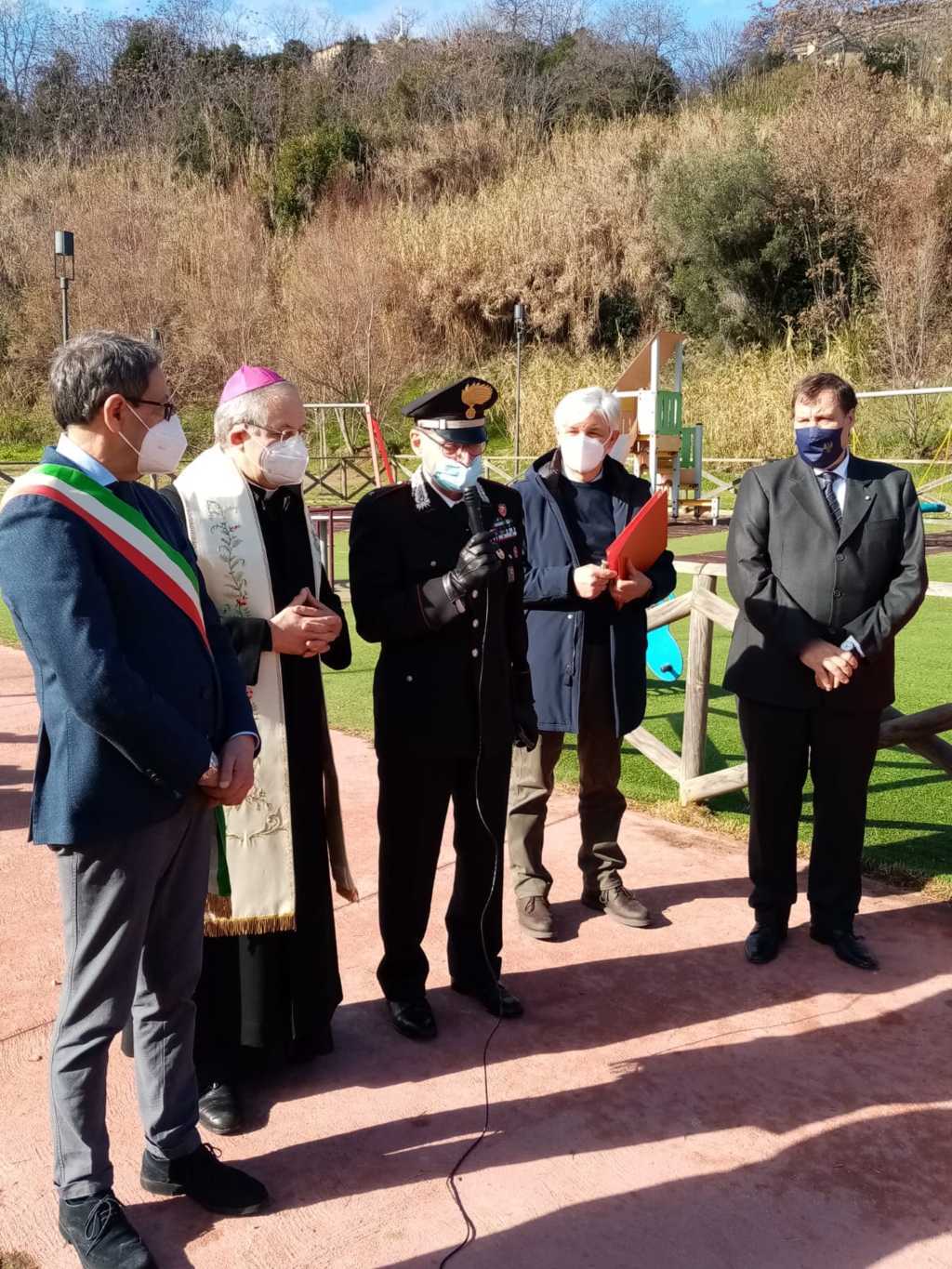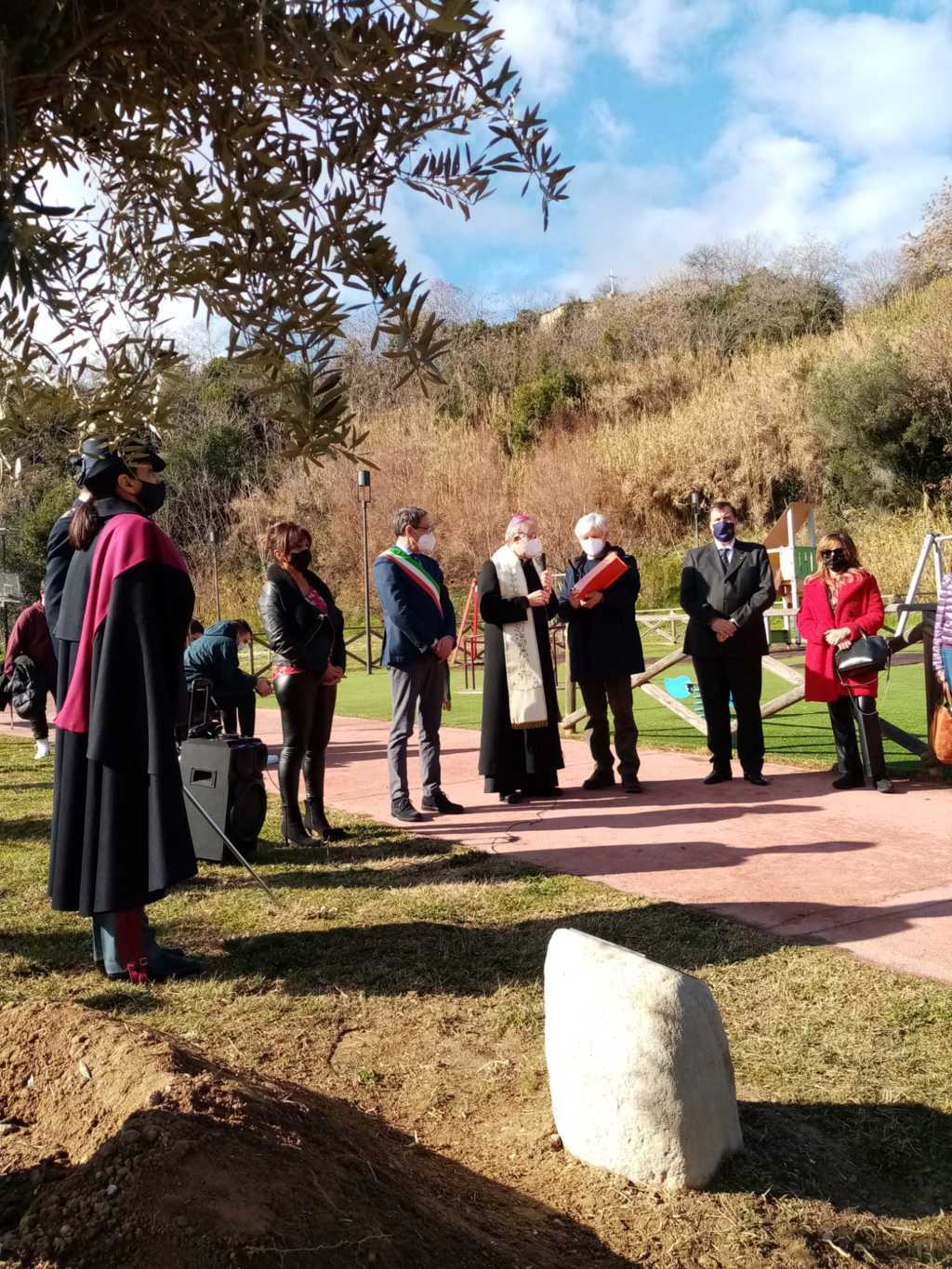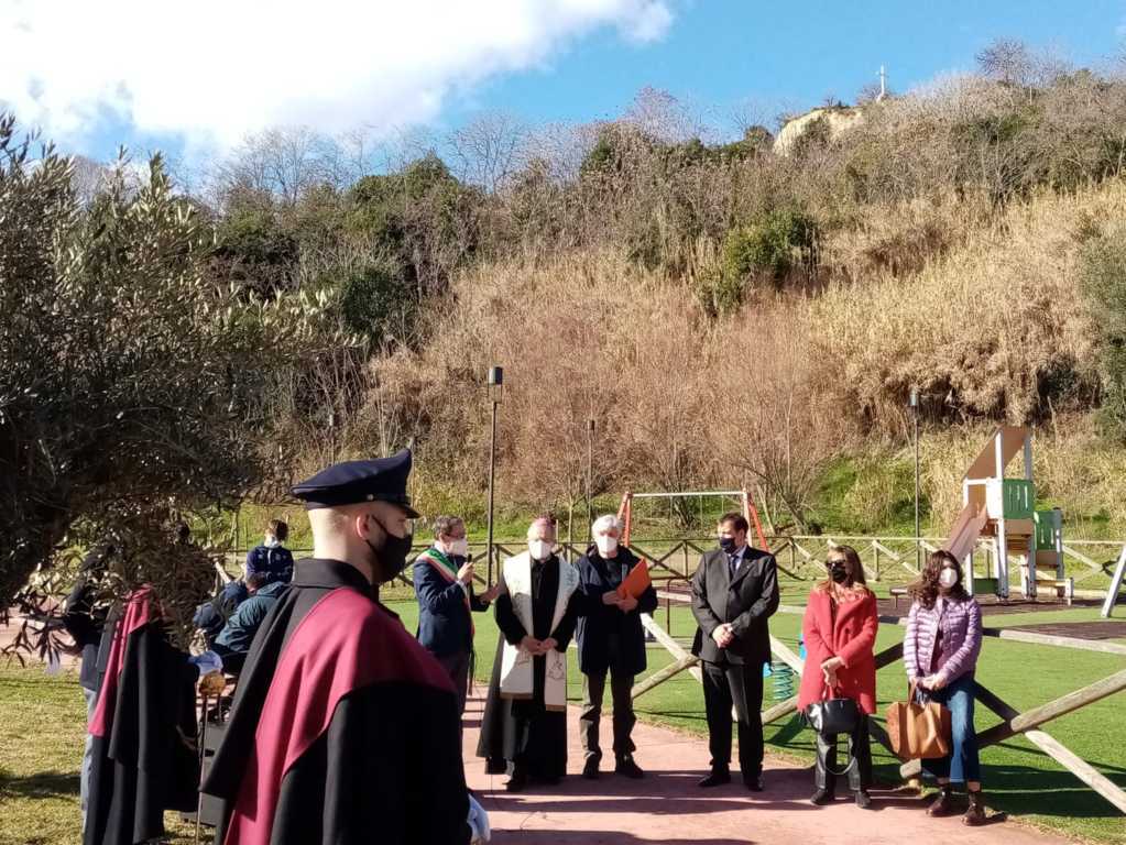 Dopo i saluti di rito, il Questore Alessio Cesareo ha ringraziato il sindaco Piunti ed il Vescovo Bresciani per l’ospitalità, la presenza e lo spazio dedicato al questore Giovanni Palatucci, di cui ha ricordato i tratti salienti di vita. Vice commissario aggiunto di pubblica sicurezza, nel ruolo di reggente della Questura di Fiume, Palatucci salvò dai campi di concentramento migliaia di Ebrei, fino a quando fu arrestato dai nazisti e internato nel campo di concentramento di Dachau dove morì di stenti il 10 Febbraio 1945. “Questa targa – ha detto il questore Cesareo – ricorderà ai visitatori del parco le atrocità avvenute durante la Seconda Guerra Mondiale e servirà soprattutto alle nuove generazioni ad avere conoscenza e coscienza di ciò che è stato. Purtroppo, infatti, nonostante siano passati molti anni dalla caduta del regime nazista, si verificano ancora episodi di razzismo e discriminazione: è quindi molto importante raccontare alle giovani leve l’esempio di vita dato da questo alto funzionario dello stato che ha sempre operato diffondendo una cultura di rispetto e di pace. Ecco allora il motivo per cui oggi in tutta Italia viene piantato un albero di ulivo, da sempre segno di pace. Dobbiamo parlare ai nostri giovani di Palatucci e dei tanti costruttori di pace che hanno servito il nostro paese, perchè senza pace una società non progredisce.”