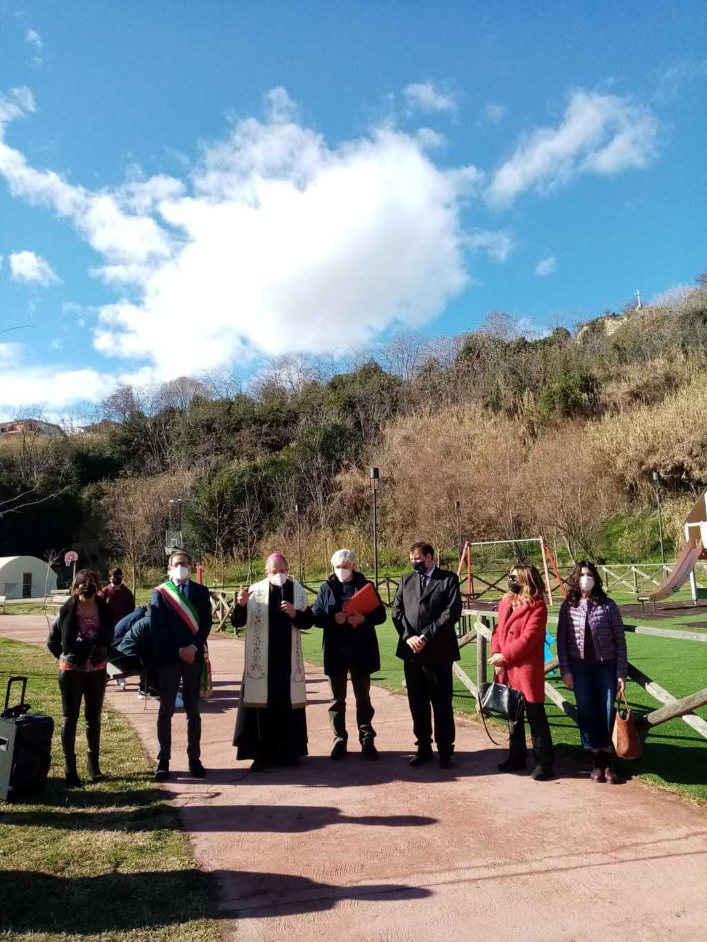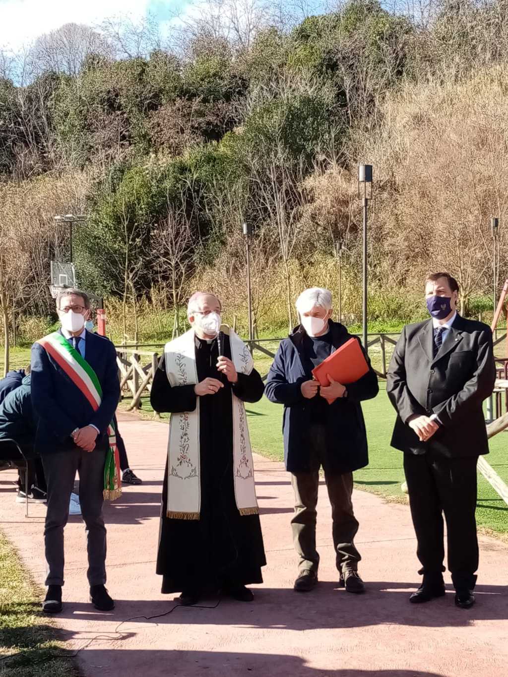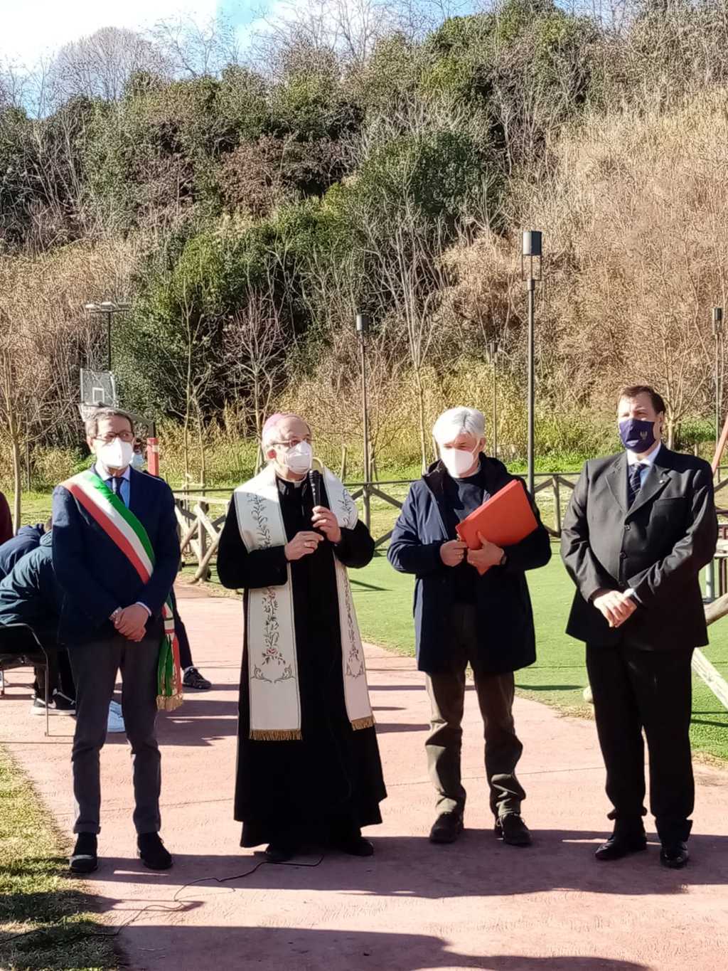 Dopo i saluti di rito, il Questore Alessio Cesareo ha ringraziato il sindaco Piunti ed il Vescovo Bresciani per l’ospitalità, la presenza e lo spazio dedicato al questore Giovanni Palatucci, di cui ha ricordato i tratti salienti di vita. Vice commissario aggiunto di pubblica sicurezza, nel ruolo di reggente della Questura di Fiume, Palatucci salvò dai campi di concentramento migliaia di Ebrei, fino a quando fu arrestato dai nazisti e internato nel campo di concentramento di Dachau dove morì di stenti il 10 Febbraio 1945. “Questa targa – ha detto il questore Cesareo – ricorderà ai visitatori del parco le atrocità avvenute durante la Seconda Guerra Mondiale e servirà soprattutto alle nuove generazioni ad avere conoscenza e coscienza di ciò che è stato. Purtroppo, infatti, nonostante siano passati molti anni dalla caduta del regime nazista, si verificano ancora episodi di razzismo e discriminazione: è quindi molto importante raccontare alle giovani leve l’esempio di vita dato da questo alto funzionario dello stato che ha sempre operato diffondendo una cultura di rispetto e di pace. Ecco allora il motivo per cui oggi in tutta Italia viene piantato un albero di ulivo, da sempre segno di pace. Dobbiamo parlare ai nostri giovani di Palatucci e dei tanti costruttori di pace che hanno servito il nostro paese, perchè senza pace una società non progredisce.”