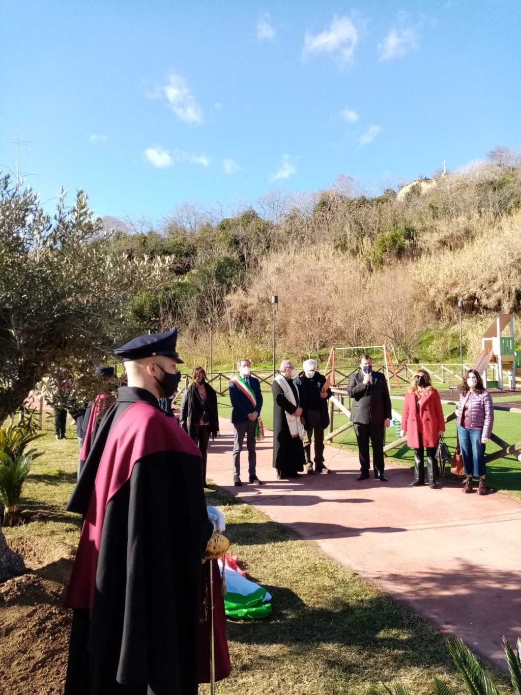 SAN BENEDETTO DEL TRONTO – Si è svolta ieri, al parco Cerboni, alle ore 11:00, sotto il calore di un sole radioso e fulgente, la cerimonia di commemorazione della morte di Giovanni Palatucci, Medaglia d’Oro al merito civile della Repubblica Italiana per aver salvato la vita a molti Ebrei durante la Seconda Guerra Mondiale. In sua memoria oggi, in molti comuni italiani, è stato piantato un albero di ulivo con relativa targa commemorativa a lui dedicata. Il vescovo Carlo Bresciani, intervenuto appositamente per l’occasione, ha benedetto il luogo e tutti i partecipanti. Presenti le massime autorità civili e militari: il Questore della Provincia di Ascoli Piceno Alessio Cesareo; il Vice-Prefetto Aurora Monaldi; il Sindaco della città Pasqualino Piunti; il Comandante della Polizia Municipale Giuseppe Coccia; il Tenente Giuseppe Palatucci, Comandante del Nucleo Operativo Radiomobile della Compagnia di Carabinieri della città; il Capitano Angelo Nicola De Benedetto, Comandante della Compagnia della Guardia di Finanza; il Capitano Marco Mancini, Comandante della Capitaneria di Porto; il Comandante della Polizia Penitenziaria di Ascoli Piceno Pio Mancini.