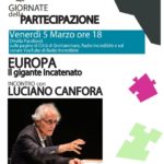 L’incontro prende spunto dal libro “Europa, il gigante incatenato”, in cui il prof. Canfora analizza le ragioni, economiche, politiche, strategiche e culturali, per cui l’Europa può salvarsi dalla crisi e diventare padrona dei propri destini sullo scenario mondiale.