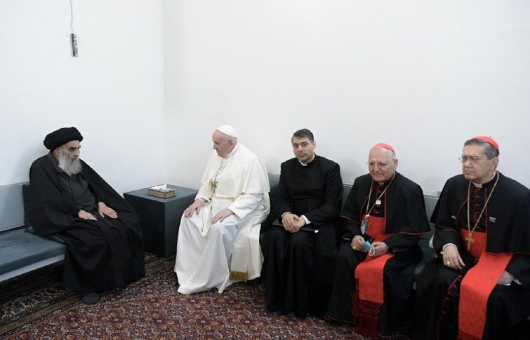 Anche papa Francesco – secondo quanto ha poi riferito ai giornalisti il direttore della sala stampa vaticana Matteo Bruni – ha sottolineato l’importanza della collaborazione e dell’amicizia fra le comunità religiose. L’incontro è stato l’occasione per il Papa anche per ringraziare il Grande Ayatollah Al-Sistani perché, assieme alla comunità sciita, di fronte alla violenza e alle grandi difficoltà degli anni scorsi, ha levato la sua voce in difesa dei più deboli e perseguitati, affermando la sacralità della vita umana e l’importanza dell’unità del popolo iracheno. L’Ayatollah al-Sistani è infatti l’Ayatollah più importante, venerato e seguito nel mondo sciita. Oggi novantenne, è diventato il successore dell’Ayatollah al-Khoei nel 1992. Attraverso il suo insegnamento e la sua giurisprudenza ha seguito tutti gli sconvolgimenti politici, le rivoluzioni, le guerre e le ricostruzioni che si sono succedute nella storia di questo Paese.La sua è sempre stata una voce di tolleranza e moderazione. Con circa 350 milioni di seguaci in tutto il mondo, in tutto il Medio Oriente, dal subcontinente indiano all’Europa e al Nord America, è, nella sua persona, il “fondamento” della comunità sciita mondiale.