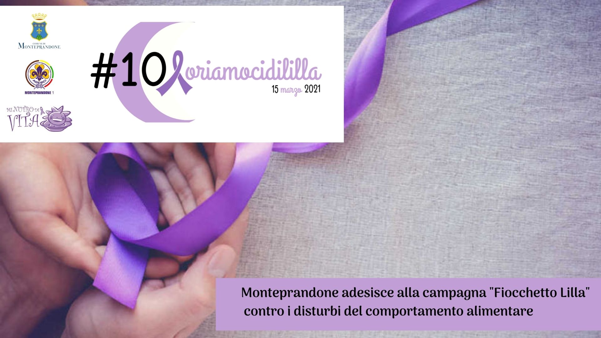 MONTEPRANDONE – Anche Monteprandone aderisce alla “Giornata nazionale del fiocchetto lilla”, simbolo dell’impegno e della consapevolezza nei confronti delle problematiche legate ai disturbi del comportamento alimentare (DCA) che si celebra il 15 marzo.