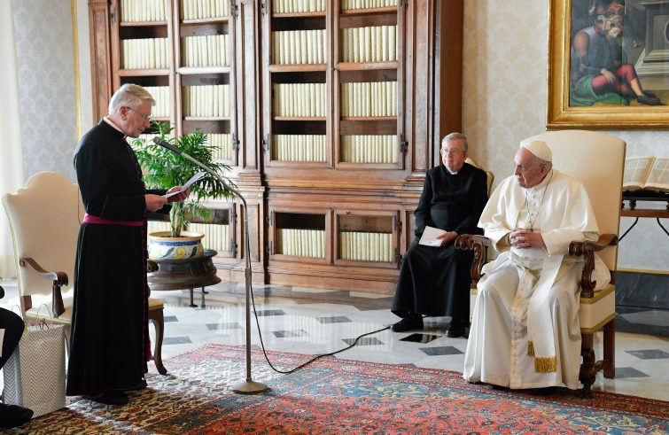 È il monito del Papa, nel discorso consegnato alla comunità del Pontificio Collegio Belga, ricevuta in udienza in occasione dei 175 anni dalla sua fondazione. “Non pone al centro sé stesso e le proprie idee, ma il bene di coloro che è chiamato a custodire, evitando le opposte tentazioni del dominio e della noncuranza”, prosegue Francesco soffermandosi sulla figura di San Giuseppe, che “è un padre che sogna”. “Non un sognatore nel senso di uno con la testa nelle nuvole, sganciato dalla realtà – precisa il Papa – ma un uomo che sa guardare oltre ciò che vede: con sguardo profetico, capace di riconoscere il disegno di Dio là dove altri non vedono nulla, e così avere chiara la meta verso cui tendere”. San Giuseppe, infatti, “ha saputo vedere in Maria e Gesù non solo una giovane sposa e un bambino: sempre vedeva in loro l’azione di Dio, la presenza di Dio. Così, custodendo la fragilità del Bambino e di sua Madre, Giuseppe ha guardato al di là dei suoi doveri di padre di famiglia e, preferendo credere più a Dio che ai propri dubbi, si è offerto a Lui come strumento per la realizzazione di un piano più grande, in un servizio prestato nel nascondimento, generoso e instancabile, sino alla fine silenziosa della propria vita”. “Per i preti, allo stesso modo, è necessario saper sognare la comunità che si ama, per non limitarsi a voler conservare ciò che esiste”, la ricetta di Francesco: “Conservare e custodire non sono sinonimi!”. Di qui la necessità di “essere pronti a partire dalla storia concreta delle persone per promuovere conversione e rinnovamento in senso missionario, e far crescere una comunità in cammino, fatta di discepoli guidati dallo Spirito e spinti dall’amore di Dio”. “Riscoprire in modo particolare nella preghiera la figura e la missione di San Giuseppe, docile alla volontà di Dio, umile autore di grandi imprese, servo obbediente e creativo”, l’invito finale: “Vi farà bene porre voi stessi e la vostra vocazioni sotto il suo manto e imparare da lui l’arte della paternità, che sarete presto chiamati a esercitare nelle comunità e negli ambiti e servizi ministeriali che vi saranno affidati”.