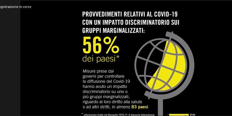 La pandemia è stata utilizzata come un’arma per attaccare ulteriormente i diritti umani. Più del 56% dei 149 Paesi presi in esame ha attuato politiche discriminatorie. È quanto emerge dal rapporto 2020-2021 sui diritti umani presentato oggi da Amnesty International, che descrive “un mondo in preda al caos, con i sistemi sociali, politici ed economici a pezzi”. Lo ha ricordato oggi durante la presentazione Emanuele Russo, presidente di Amnesty International Italia. “La situazione in cui il mondo si trova – ha detto – è causata certo dal virus ma anche da decenni di politiche governative divisive e ostili che hanno vilipeso il valore della dignità umana e i diritti umani. La pandemia è solo la cartina di tornasole. Non andrà tutto bene se non saranno prese decisioni drastiche politiche nel gestire la cosa pubblica. Fino ad adesso non c’è un governo che abbia dimostrato di essere eccezionale come la situazione avrebbe richiesto”. “Tutte le ricerche – ha sottolineato Russo – dimostrano che la pandemia è stata utilizzata deliberatamente per limitare la fruizione diritti umani da parte delle popolazioni”. A subirne di più le conseguenze sono stati i i gruppi già marginalizzati, come “donne, rifugiati, migranti, i detenuti” ma anche “gli anziani abbandonati nelle Rsa in Italia”. Il rapporto di Amnesty rivela inoltre “vessazioni da parte del 28% degli Stati nei confronti degli operatori sanitari, che hanno lavorato in condizioni ancora peggiori”. In Nicaragua, ad esempio, almeno 16 operatori sanitari sono stati licenziati dopo che avevano denunciato la mancanza dei dispositivi di protezione personale. Oltre la metà dei Paesi del mondo ha attuato politiche discriminatorie: nelle Filippine, ad esempio il presidente Rodrigo Duterte ha ordinato alla polizia di uccidere chi protestava o chi causava “problemi” durante le misure di quarantena. Nel Brasile del presidente Bolsonaro, tra gennaio e giugno le forze di polizia hanno ucciso almeno 3181 persone, una media di 17 al giorno. In India è stata inasprita la repressione contro gli attivisti della società civile, anche attraverso raid nelle abitazioni, con la scusa della lotta al terrorismo. In Cina il governo ha proseguito a perseguitare gli uiguri e le altre minoranze musulmane del Xinjiang e a Hong Kong ha fatto entrare in vigore una legge sulla sicurezza nazionale per legittimare la repressione politica.