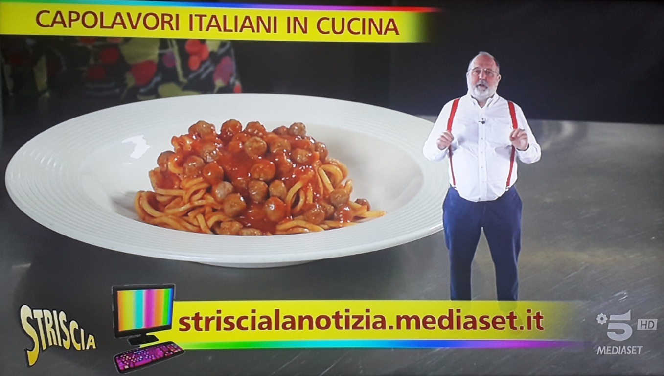 COLONNELLA – C’è stato un po’ d’Abruzzo, un po’ di Teramo e soprattutto molto di Colonnella nella puntata di “Striscia La Notizia” appena andata in onda stasera su Canale 5. Per la rubrica ‘Capolavori Italiani in Cucina’, curata da Paolo Marchi, è stata ospite la Chef Patrizia Corradetti del Ristorante Zenobi con i suoi maccheroncini alla chitarra con le pallottine ( cioè polpettine), un piatto tipico della cucina abruzzese ormai noto in tutta Italia.