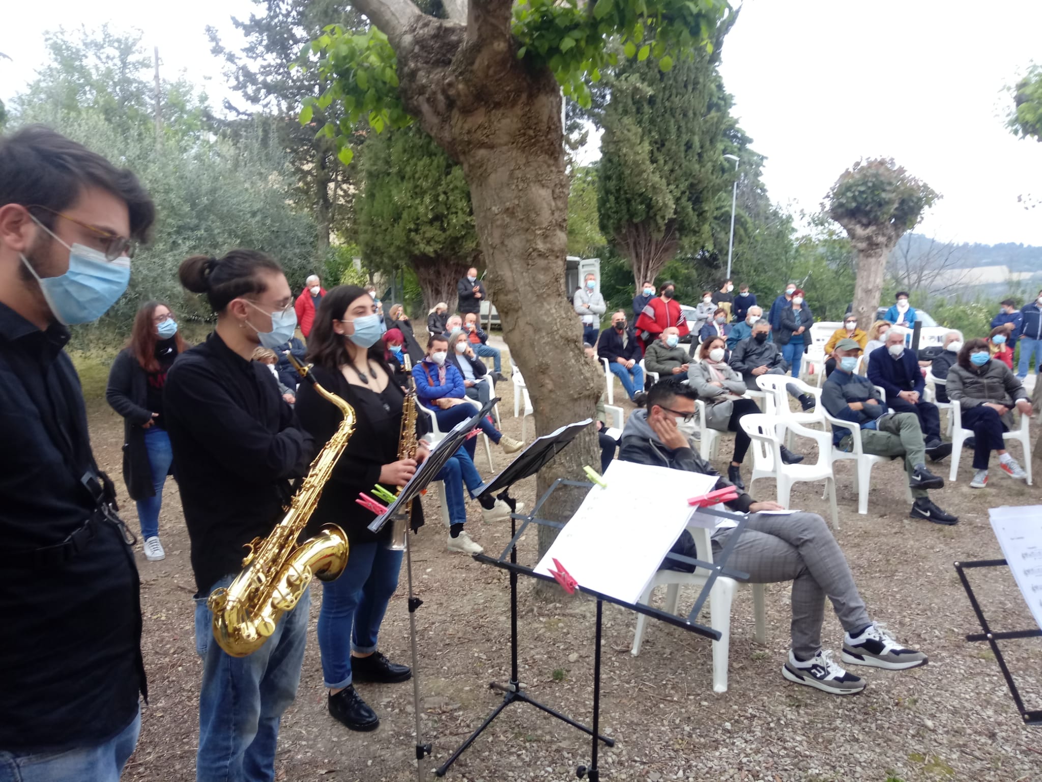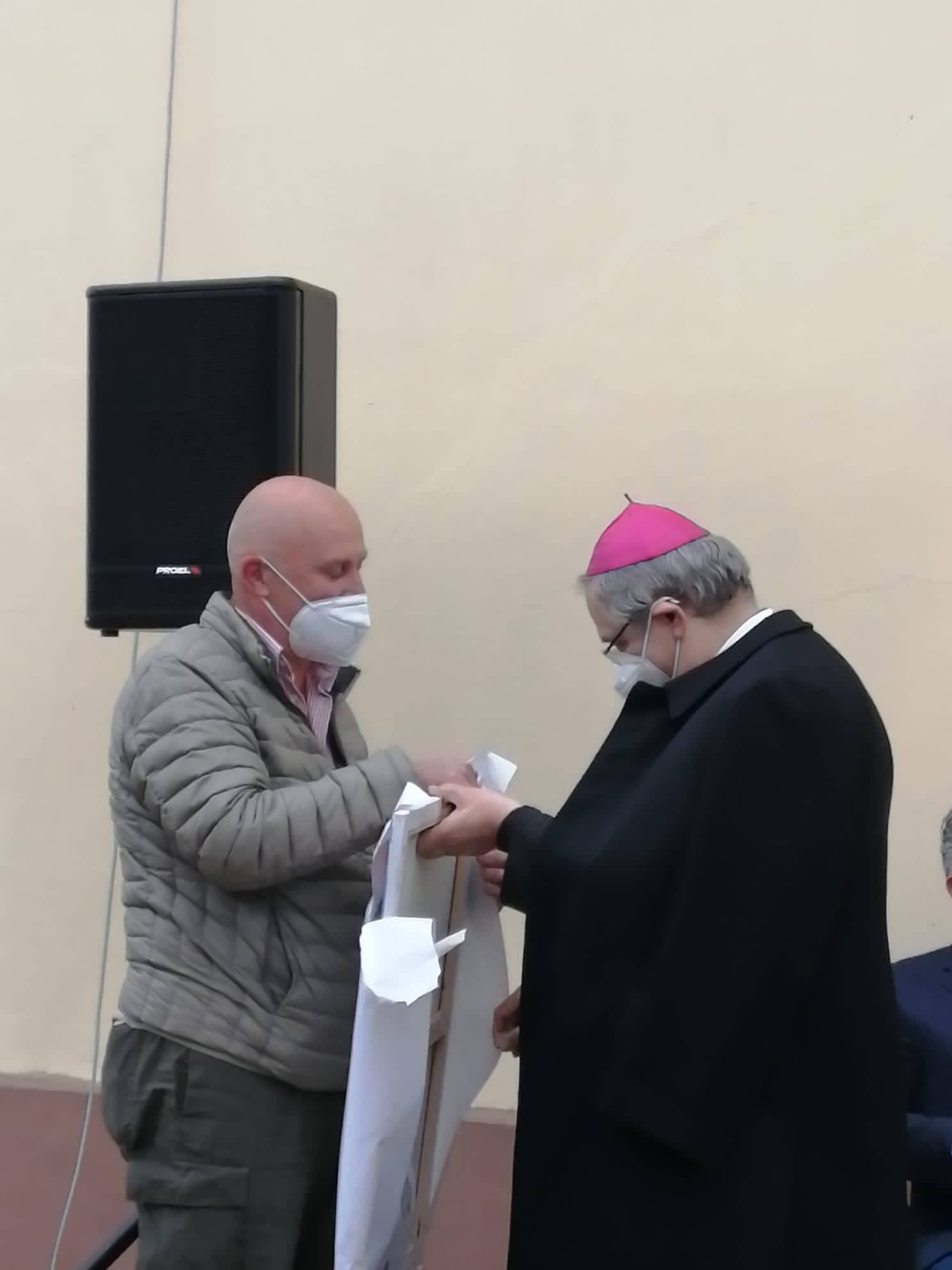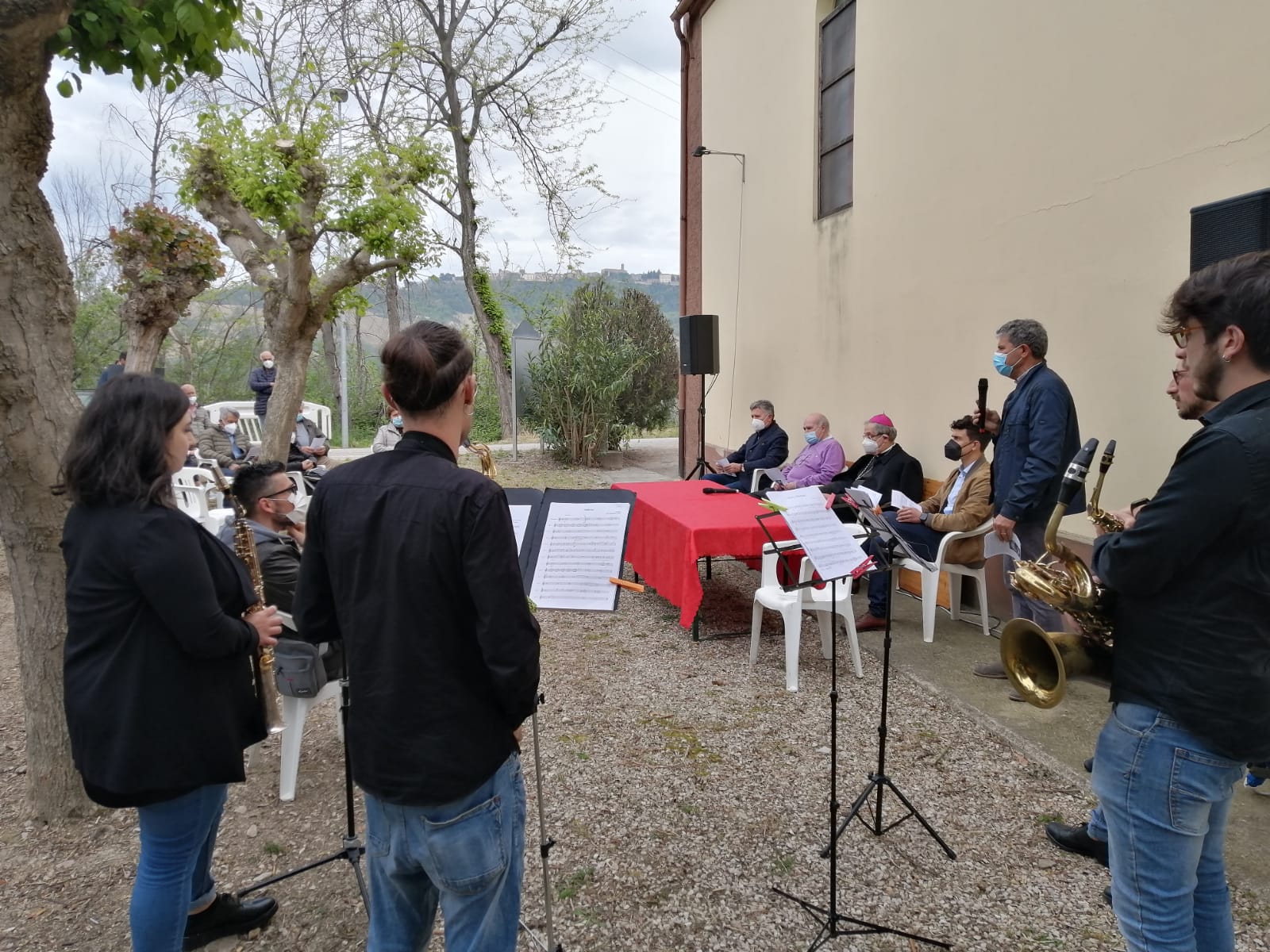 L’evento è stato allietato dalla presenza di quattro saxofonisti del Conservatorio di Fermo che hanno eseguito dei brani musicali, molto apprezzati dai numerosi intervenuti, in gran parte persone legate al mondo del lavoro locale, in particolare al settore agricolo e dell’artigianato. Non solo musica ma anche arte: infatti il pittore Patrizio Moscardelli ha offerto al Vescovo Carlo un quadro realizzato da alcuni ospiti della Caritas Diocesana che rappresenta il tempo della pandemia e la sua precarietà. La giornata si è conclusa con la celebrazione della Santa Messa presieduta dal Vescovo Carlo Bresciani e siamo veramente grati perché è stata una giornata piena di speranza della quale il nostro territorio ha tanto bisogno».