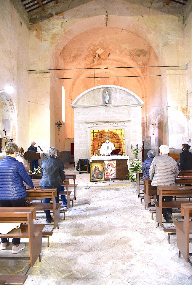 Da sottolineare il grande entusiasmo e la partecipazione (rispettando severamente le norme anti-covid) degli abitanti della contrada (“i contradaioli”!) che prende nome proprio da questo antichissimo Santuario, come è normale anche la presenza di tanti paesani e di gente che risale verso il Santuario dalla sottostante vallata dell’Aso!