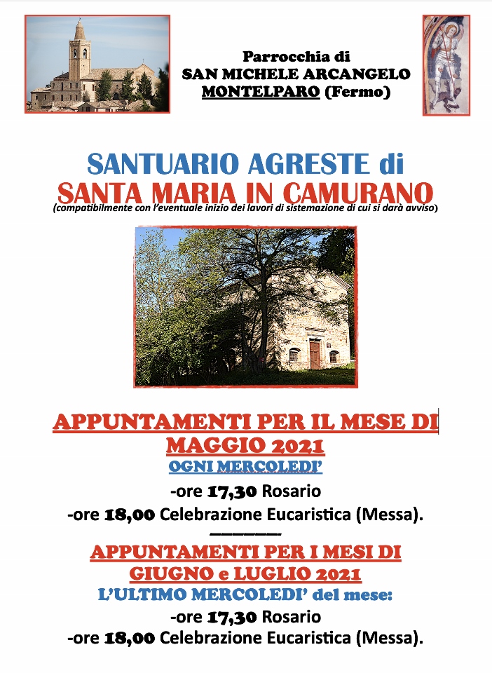 MONTELPARO – Da ieri pomeriggio, mercoledì 5 maggio 2021, è iniziato il mese Mariano anche nel bellissimo e storico Santuario Agreste di Santa Maria in Camurano di Montelparo.