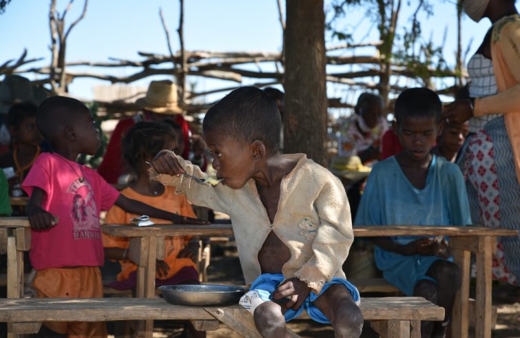 Ogni giorno sempre più vite sono in pericolo con la fame che stringe la sua morsa nel Madagascar del sud. E’ l’allarme lanciato oggi dalle due agenzie delle Nazioni Unite Fao e World food programme (Wfp), su una crisi umanitaria che rischia di rimanere invisibile. Circa 1,14 milioni di persone nel Madagascar del sud affrontano alti livelli di insicurezza alimentare acuta, quasi 14.000 sono al livello di “catastrofe”. “A meno che non vengano prese azioni urgenti ora, si prevede che il numero di persone a livello di catastrofe raddoppi nel corso della prossima stagione di magra che inizia ad ottobre”, avvertono le due agenzie Onu. Fino a tre quarti della popolazione nel distretto maggiormente colpito di Amboasary Atsimo soffre le dure conseguenze di siccità, tempeste di sabbia, malattie e parassiti animali e delle piante e impatto del Covid-19. “I tassi di malnutrizione acuta globale hanno superato l’allarmante cifra del 27 per cento, causando danni irreversibili ai bambini”, denunciano. La peggiore siccità degli ultimi quarant’anni, che si è consolidata negli ultimi tre anni, ha distrutto i raccolti e reso difficile l’accesso delle persone al cibo. Ciò avviene in aggiunta ad anni di deforestazione e della risultante erosione del suolo – ora aggravata dal cambiamento climatico – che hanno devastato l’ambiente, con tempeste di sabbia senza precedenti che hanno trasformato interi appezzamenti di terra arabile in una terra desolata. Anche le riserve umanitarie di cibo in Madagascar si stanno esaurendo. Il Wfp sta portando rifornimenti ma l’accesso alle aree più colpite è ostacolato da infrastrutture carenti e una scarna rete stradale. Le restrizioni dovute al Covid-19 hanno interrotto i collegamenti aerei verso l’isola con la conseguenza che i carichi umanitari arrivano solo via mare e si è allungato di molto il tempo che serve a convertire le donazioni in aiuti umanitari. Da ottobre 2020 il governo e il Wfp hanno assistito circa 750.000 persone con distribuzioni di cibo e alimenti supplementari. Il Wfp ha urgente bisogno di 74 milioni di dollari per i prossimi sei mesi. Il governo e la Fao hanno supportato circa 20.000 famiglie di agricoltori (circa 160.000 persone) ma c’è bisogno di 40 milioni di dollari per raggiungere ulteriori 225.000 famiglie.