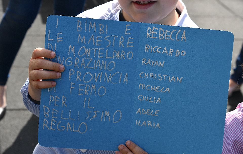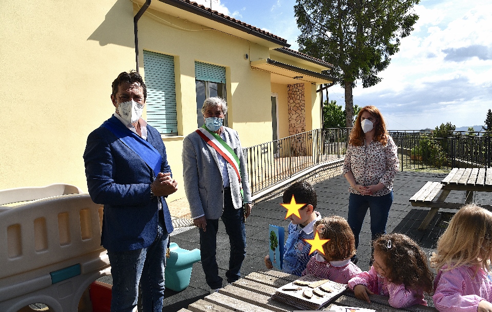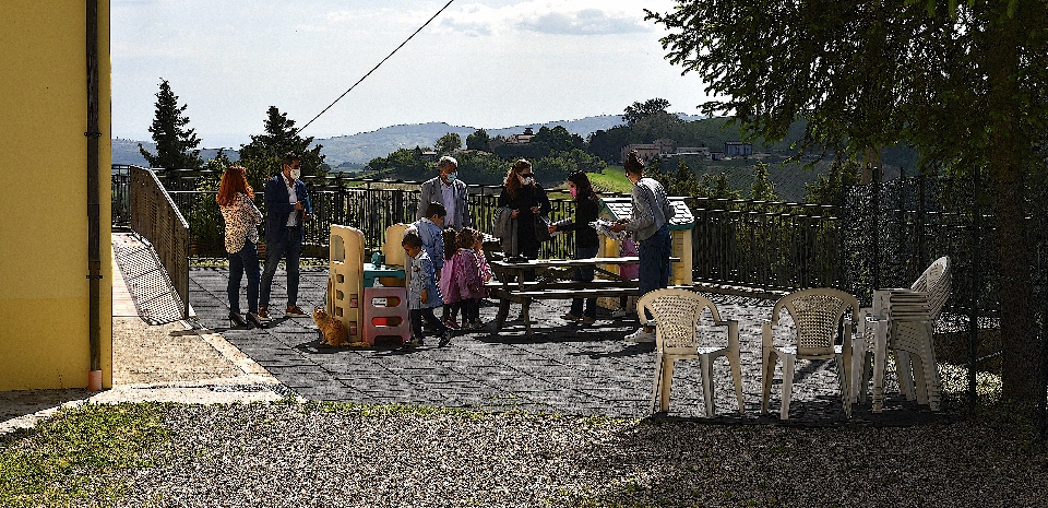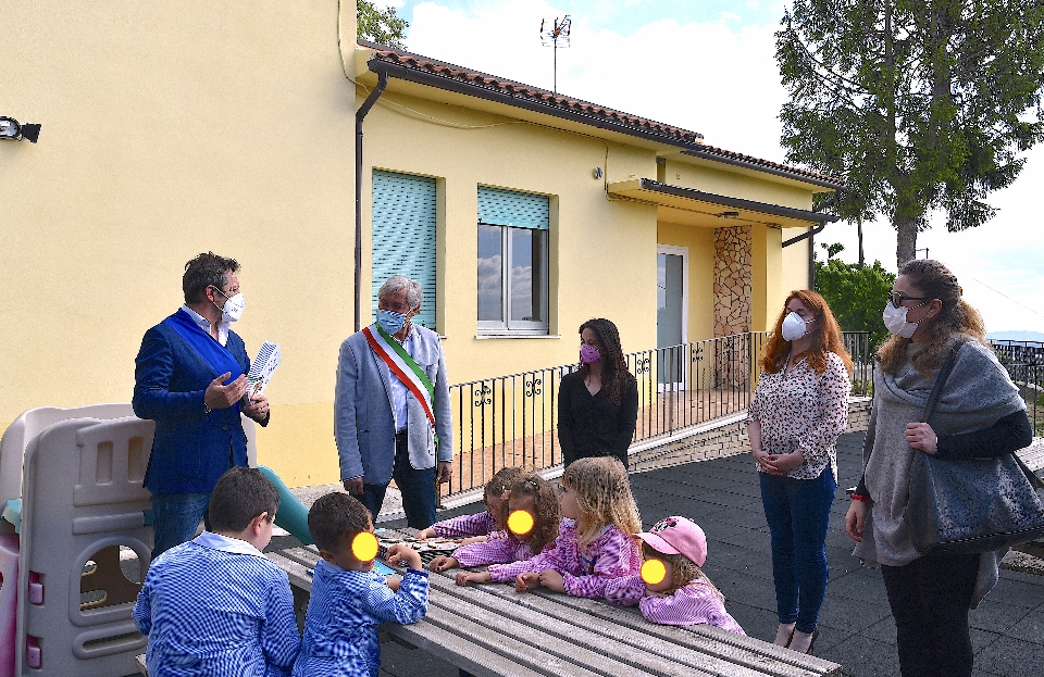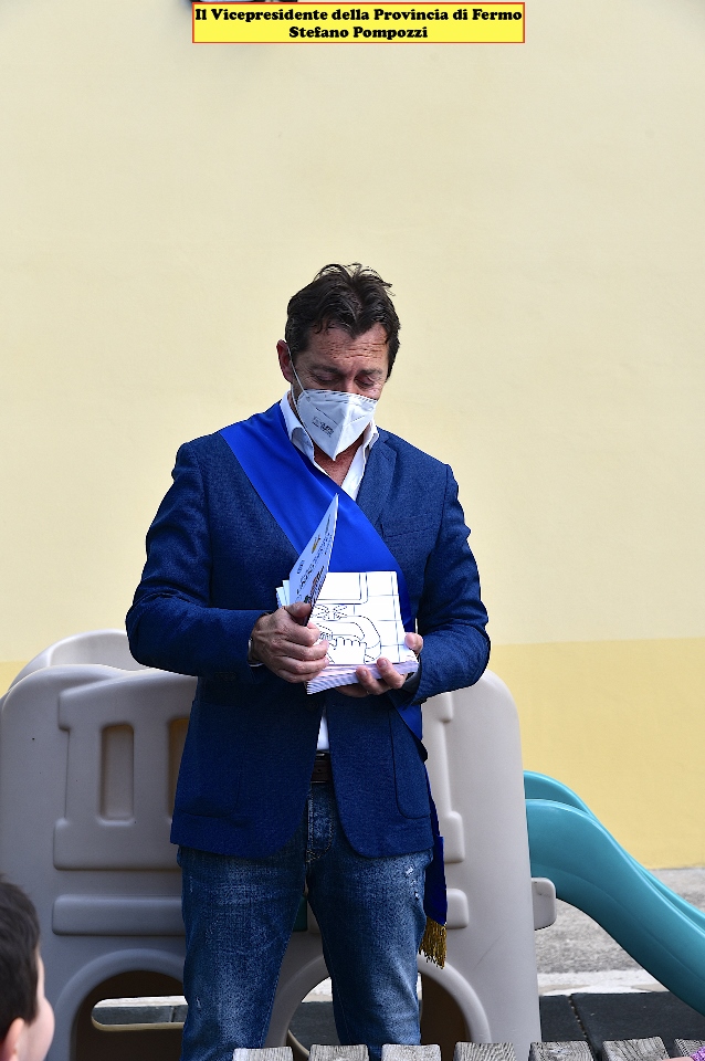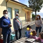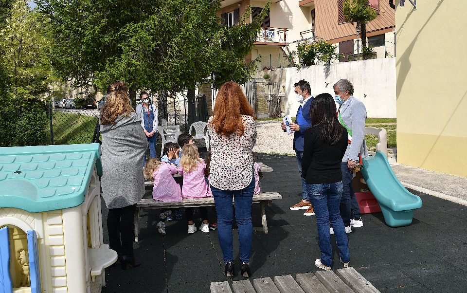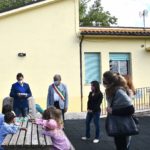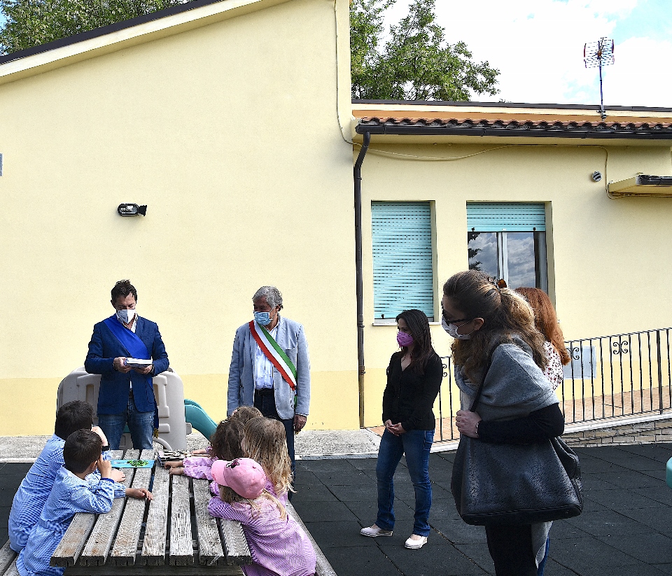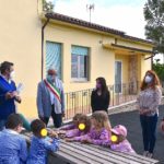 I bambini, con le loro docenti (Daniela Litta e Fabiola Celani) e l’assistente (Valentina Pacioni), hanno accolto il Vicepresidente della Provincia di Fermo e il Sindaco di Montelparo nei giardini della Scuola dove tutto si è svolto con molta partecipazione.