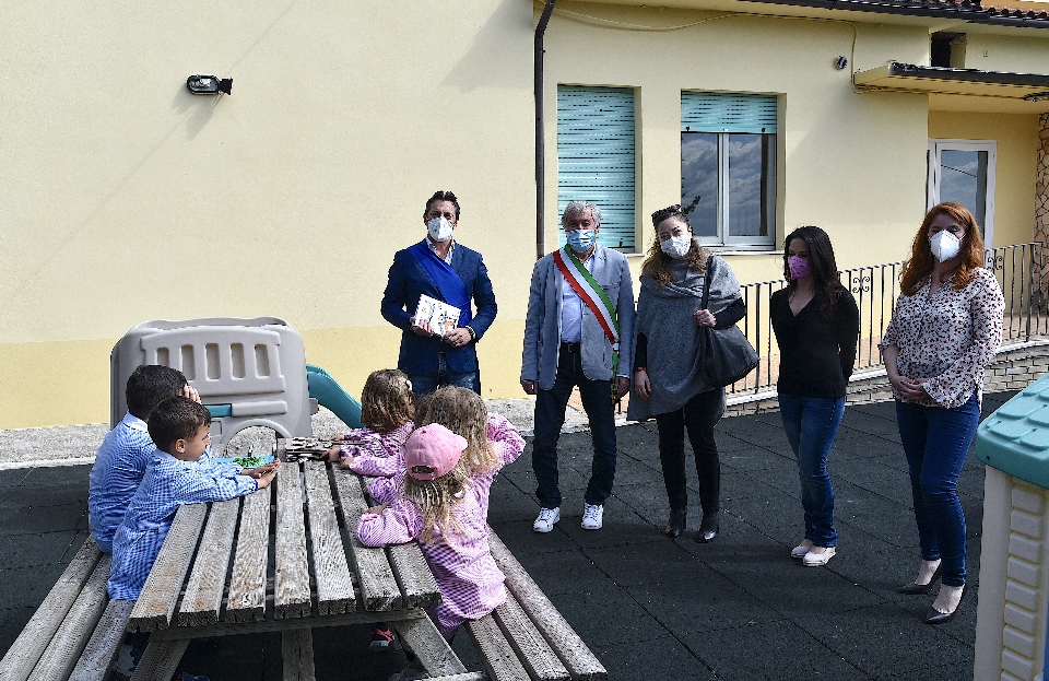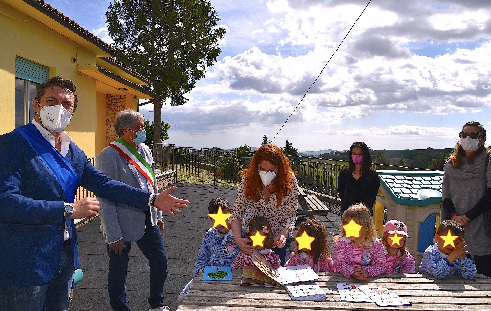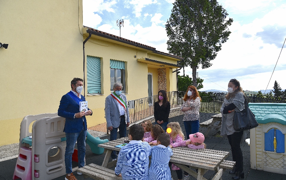 Davanti ai bambini curiosi e partecipi, erano presenti il Sindaco di Montelparo Marino Screpanti, la Dirigente scolastica dell’“I.C. Interprovinciale dei Sibillini” – Comunanza (AP) Alessandra Di Mascio, le docenti e collaboratrici della Scuola, il Dr. Pompozzi ha consegnato personalmente nelle mani di ogni bimbo il prezioso testo “L’album da colorare LINDO PINTO. Impariamo a rispettare l’ambiente: piantando il seme dell’ambiente lo si vede poi crescere”.”!