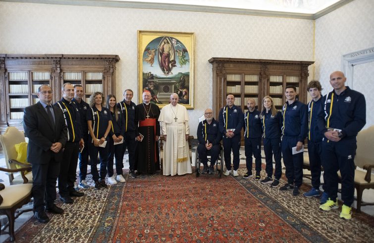 Papa Francesco ha ricevuto in udienza questa mattina la delegazione di Athletica Vaticana che tra una settimana, sabato 5 giugno, sarà nella Repubblica di San Marino per partecipare ai Campionati di atletica leggera dei Piccoli Stati d’Europa. Ne dà notizia la Sala stampa della Santa Sede. La delegazione dell’associazione sportiva vaticana, accompagnata dal card. Gianfranco Ravasi, presidente del Pontificio Consiglio della cultura, è stata accolta dal Papa, poco dopo le 11, nella Biblioteca Privata nel Palazzo Apostolico.